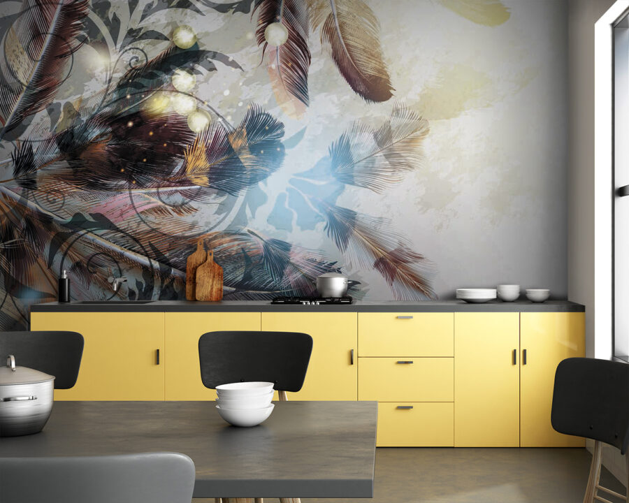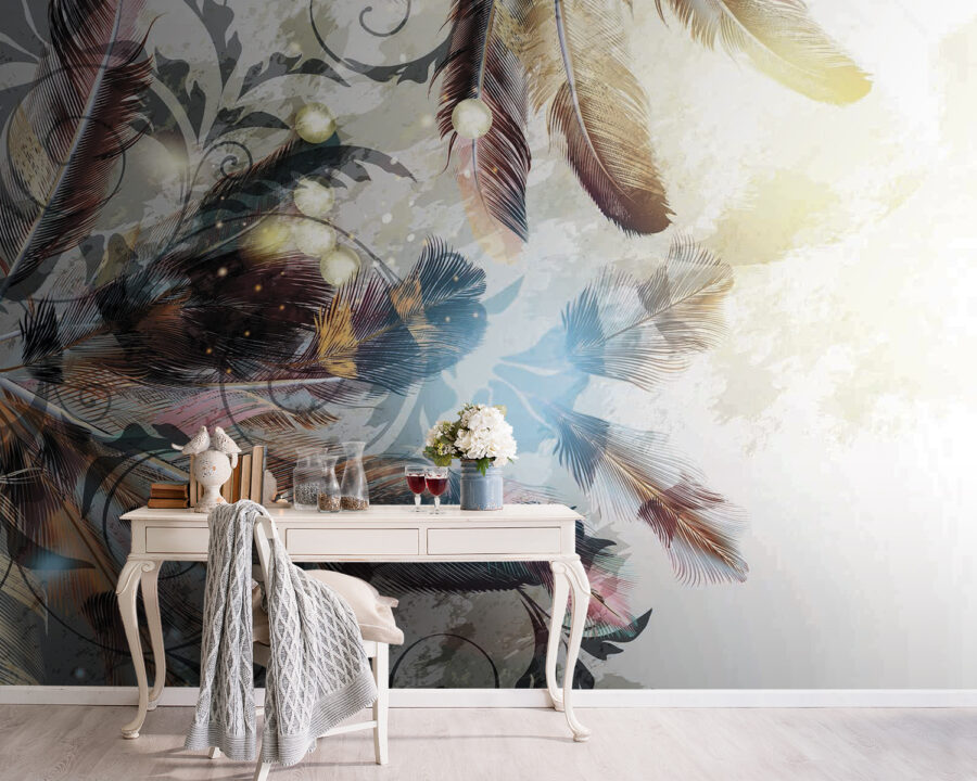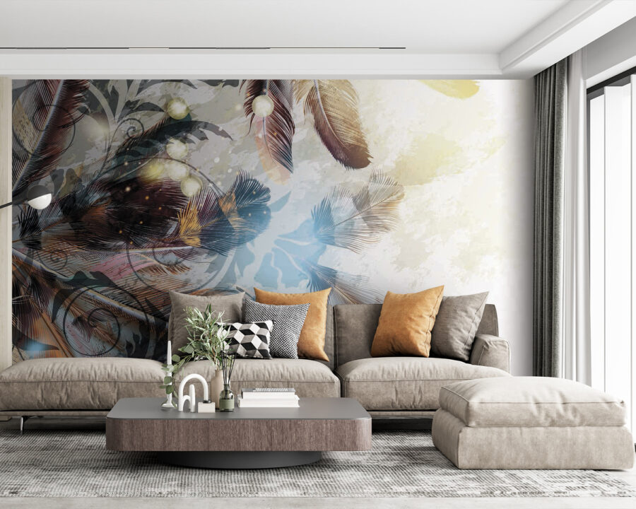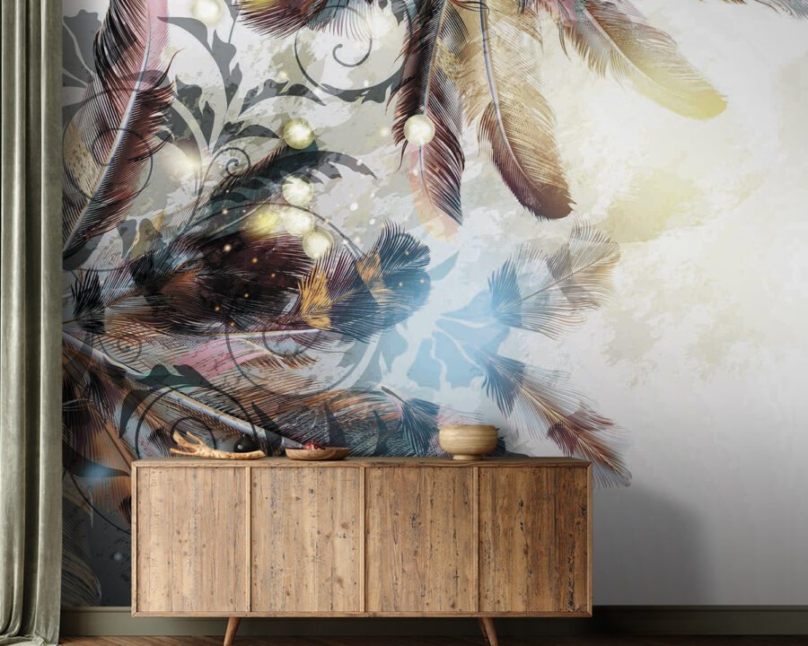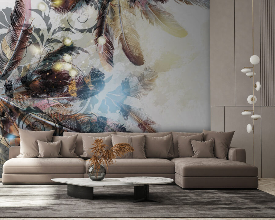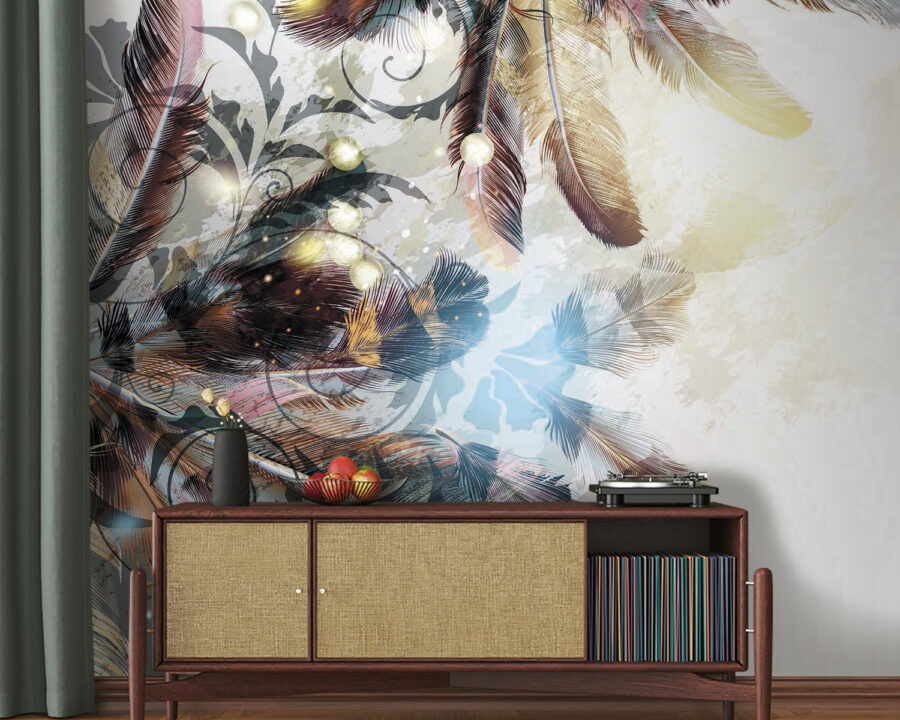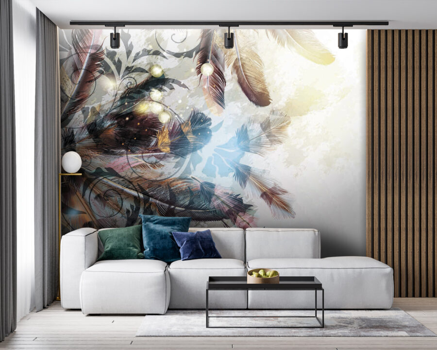 Transformați acel perete fad într-o pânză de vis cu această pictură murală încântătoare cu pene care dansează în nuanțe blânde. Este ca și cum natura ar fi decis să se plimbe prin camera dvs. de zi, adăugând un strop de magie care se simte confortabil fără efort. Imaginați-vă că vă relaxați cu o carte, învăluiți în vibrațiile suave ale acestui design frumos, ca și cum penele vă șoptesc povești despre libertate și aventură. Perfectă pentru orice spațiu care are nevoie de un mic impuls, această pictură murală echilibrează stilul și seninătatea. Sincer, este greu să nu zâmbești când vezi o astfel de frumusețe, care invită căldura și farmecul în orice cameră. Cine ar fi crezut că decorațiunile de perete pot fi atât de înălțătoare? Luați-l și lăsați pereții să vorbească!
