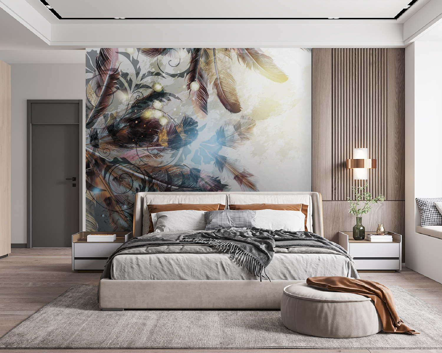 Transformați acel perete fad într-o pânză de vis cu această pictură murală încântătoare cu pene care dansează în nuanțe blânde. Este ca și cum natura ar fi decis să se plimbe prin camera dvs. de zi, adăugând un strop de magie care se simte confortabil fără efort. Imaginați-vă că vă relaxați cu o carte, învăluiți în vibrațiile suave ale acestui design frumos, ca și cum penele vă șoptesc povești despre libertate și aventură. Perfectă pentru orice spațiu care are nevoie de un mic impuls, această pictură murală echilibrează stilul și seninătatea. Sincer, este greu să nu zâmbești când vezi o astfel de frumusețe, care invită căldura și farmecul în orice cameră. Cine ar fi crezut că decorațiunile de perete pot fi atât de înălțătoare? Luați-l și lăsați pereții să vorbească!