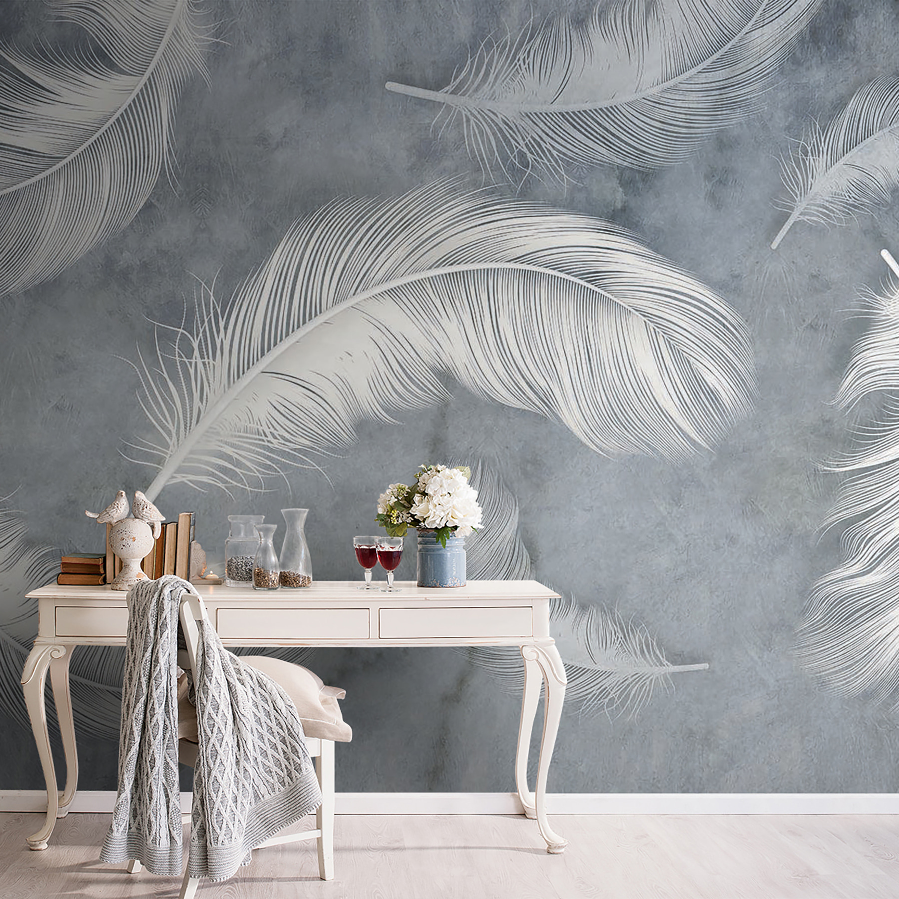 Imaginați-vă că pășiți într-o cameră și vă simțiți ca și cum tocmai ați intrat într-o oază senină, datorită penelor delicate care plutesc grațios pe un fundal moale. Această pictură murală aduce o șoaptă de natură în interior, perfectă pentru cei care iubesc o notă de fantezie în decorul lor. Imaginați-vă-o într-un colț de lectură confortabil sau într-un dormitor liniștit, unde imaginile blânde pot inspira vise cu ochii deschiși și momente de pace. Fiecare privire s-ar putea să vă amintească de o plimbare liniștită de după-amiază printr-un parc liniștit. Este o atingere subtilă care stârnește bucurie și creativitate fără a copleși simțurile. Perfect pentru cei care caută o modalitate unică de a-și exprima stilul, păstrând în același timp lucrurile ușoare și aerisite!