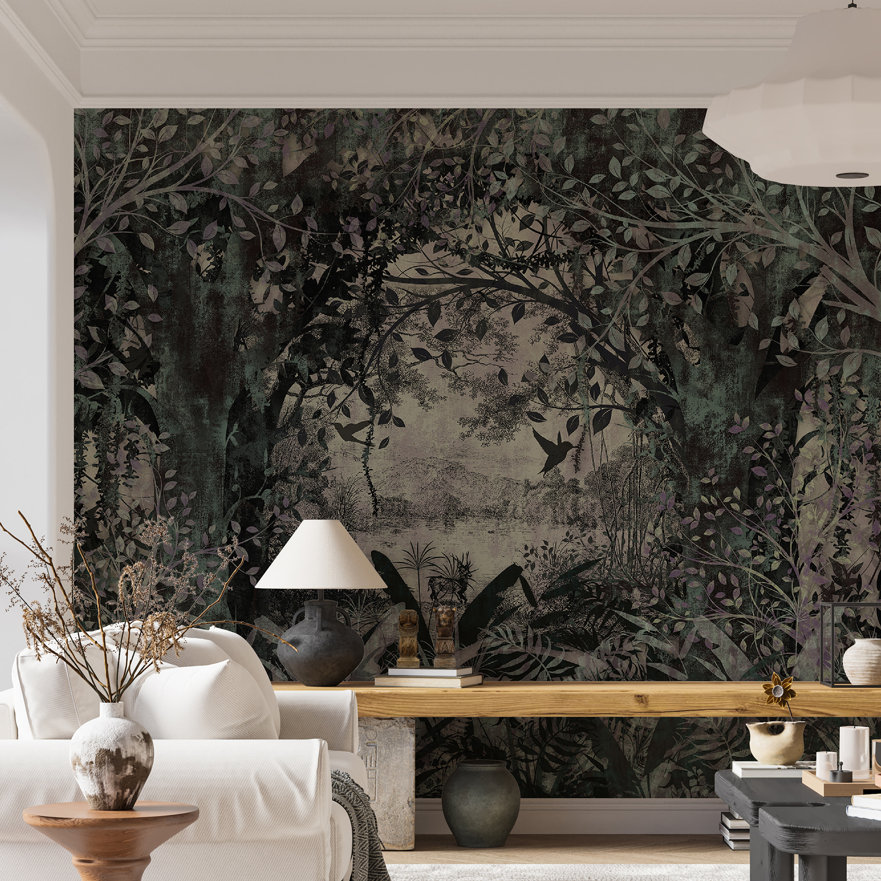 Căutați să vă transformați camera într-o ascunzătoare magică? “Pădurea fermecată”, o pictură murală abstractă încadrată de frunziș luxuriant, este exact ceea ce vă trebuie! Imaginați-vă că intrați în spațiul dvs. și sunteți purtați într-o pădure de vis, plină de mister și mirare. Această pictură murală combină maronii pământii și verdele intens cu un strop de fantezie, ceea ce o face perfectă pentru oricine iubește un amestec de stil contemporan cu o atingere de încântare. Este ca și cum ai avea propria ta Narnia – cu excepția animalelor vorbitoare, desigur. Ideală pentru un colț de lectură confortabil, un dormitor liniștitor sau chiar pentru a adăuga un pic de magie sufrageriei tale. Cu aceasta pe perete, fiecare zi poate fi ca și cum te-ai îmbarca într-o nouă aventură.