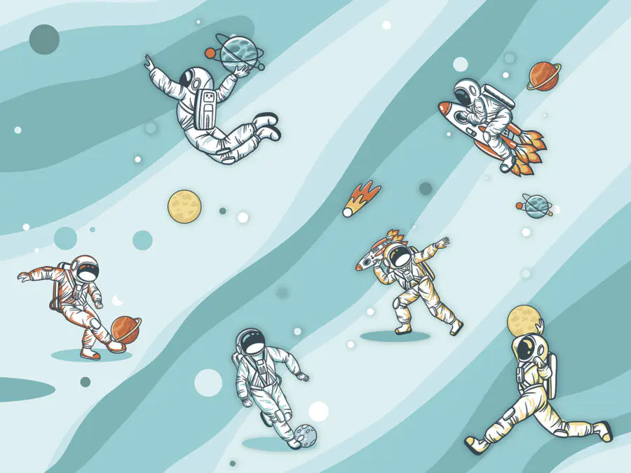 Transform a plain wall into an interstellar playground with this delightful mural featuring a lively group of astronauts floating in space. Every time someone walks by, they’ll feel like they’ve stumbled into a cosmic adventure, complete with colorfully illustrated planets, playful comet trails, and a whole lot of zero-gravity shenanigans. Imagine a child gleefully pointing at the mural, claiming they found a new space buddy, or an adult chuckling at the sight of an astronaut kicking a planet like it’s soccer practice. The soothing watercolor background adds a dreamy vibe, making it perfect for a bedroom, playroom, or even a creative office space. It’s not just decor; it’s a ticket to orbit!