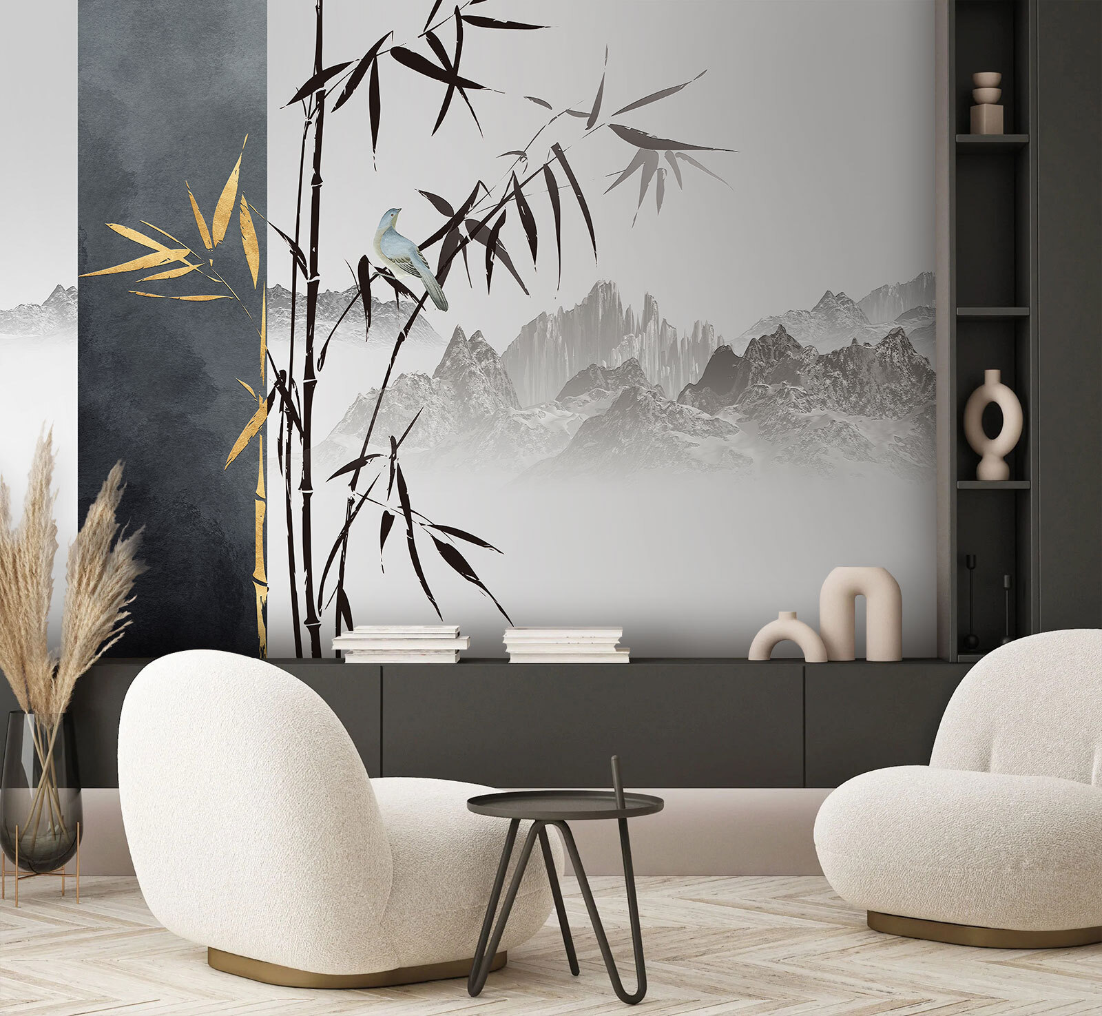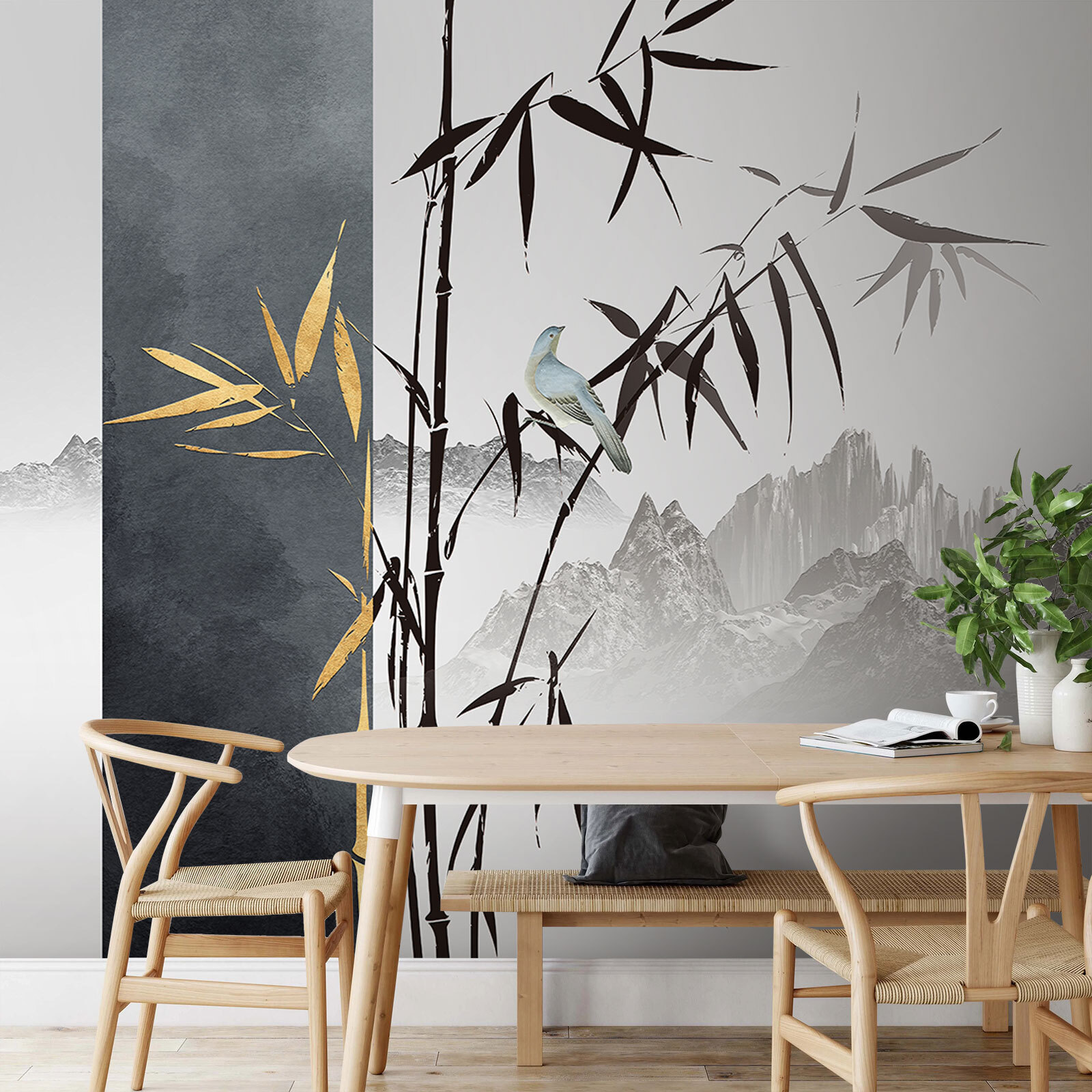 Ai visat vreodată să ai o bucată de natură senină chiar în sufrageria ta? Salutați “Bird Sitting on a Branch”, pictura murală care este ca o gură de aer proaspăt pentru pereții dvs. Imaginați-vă o pasăre delicată cocoțată pe o creangă, cu un fundal uimitor de munți cețoși – este ceva aproape magic în asta. Nuanțele suave și liniile blânde îl fac să pară un refugiu liniștit.