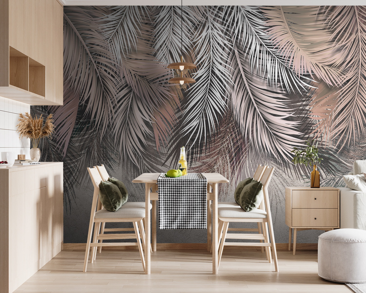 Transformați orice spațiu într-o oază tropicală cu acest uimitor „Grup de frunze de palmier pentru fototapet”. Imaginați-vă că intrați într-o cameră care vă oferă senzația unei briză ușoară și a unor zile însorite, chiar dacă este doar sufrageria dvs. Nuantele delicate ale frunzelor de palmier evocă o senzație de calm, perfectă pentru relaxare după o zi lungă sau poate doar pentru a visa la vacanța la plajă.