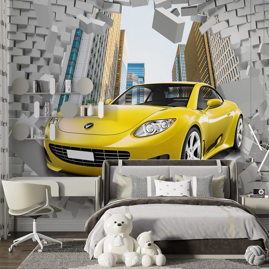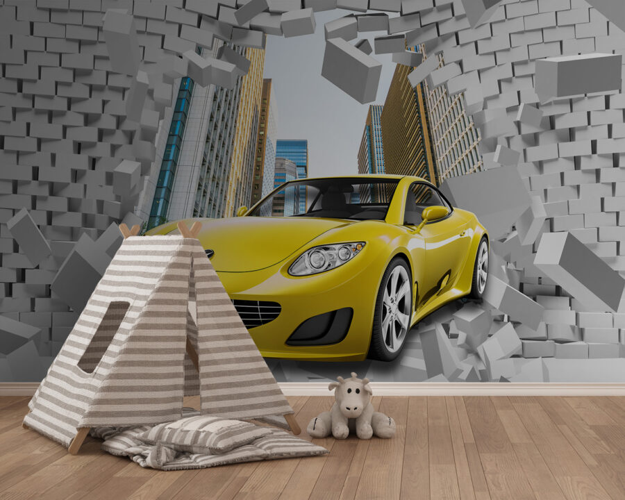 Te-ai gândit vreodată să aduci un strop de emoție în camera ta? Imaginează-ți o mașină sport izbucnind printr-un zid de cărămidă chiar pe peretele tău! Această pictură murală este perfectă dacă aveți un mic pasionat de mașini în casă – sau chiar doar pe cineva căruia îi place un pic de fler dramatic. Acesta face parte din colecțiile “Automobile” și “Brick Wall”, dar este fantastic și pentru camerele copiilor. Energia cărămizilor care se ciocnesc și a mașinii galbene și elegante adaugă un plus de culoare și acțiune. Este ca și cum ai adăuga o doză de adrenalină decorului tău. Serios, vă puteți imagina privirile de pe fețele oaspeților voștri? Un adevărat spectacol.