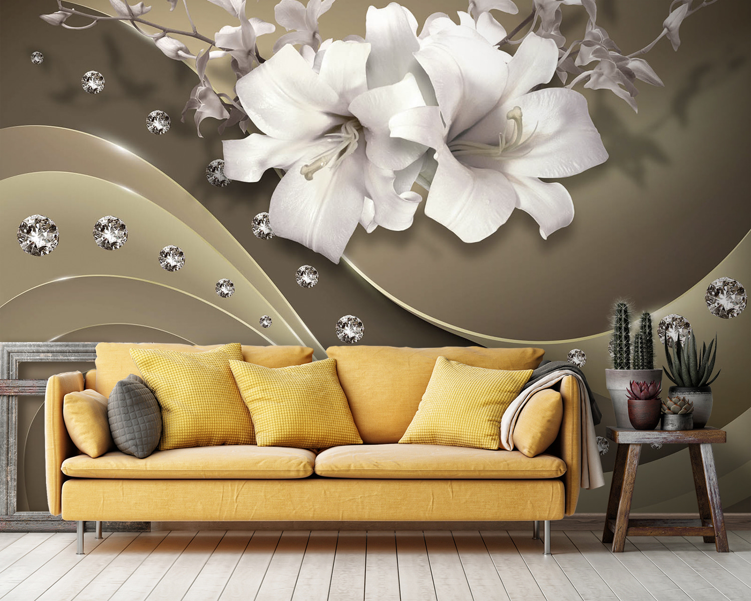 Pășiți într-o lume în care eleganța înflorește! Acest fototapet, „Flori elegante cu accente subtile”, duce frumusețea serenă la un cu totul alt nivel. Imaginați-vă crini proaspeți împletiti cu accente strălucitoare și sclipitoare, care transformă pereții dvs. într-o galerie elegantă. Nu este doar decor, ci este ca și cum ați aduce o briză ușoară de primăvară în interior. Imaginați-vă că vă primiți prietenii și vedeți cum le strălucesc ochii în timp ce admiră stilul dvs. rafinat. Culorile delicate și liniile fluide creează o atmosferă calmă, perfectă pentru relaxare după o zi lungă sau pentru a vă energiza spațiul creativ. Transformați acel perete gol în ceva special!
