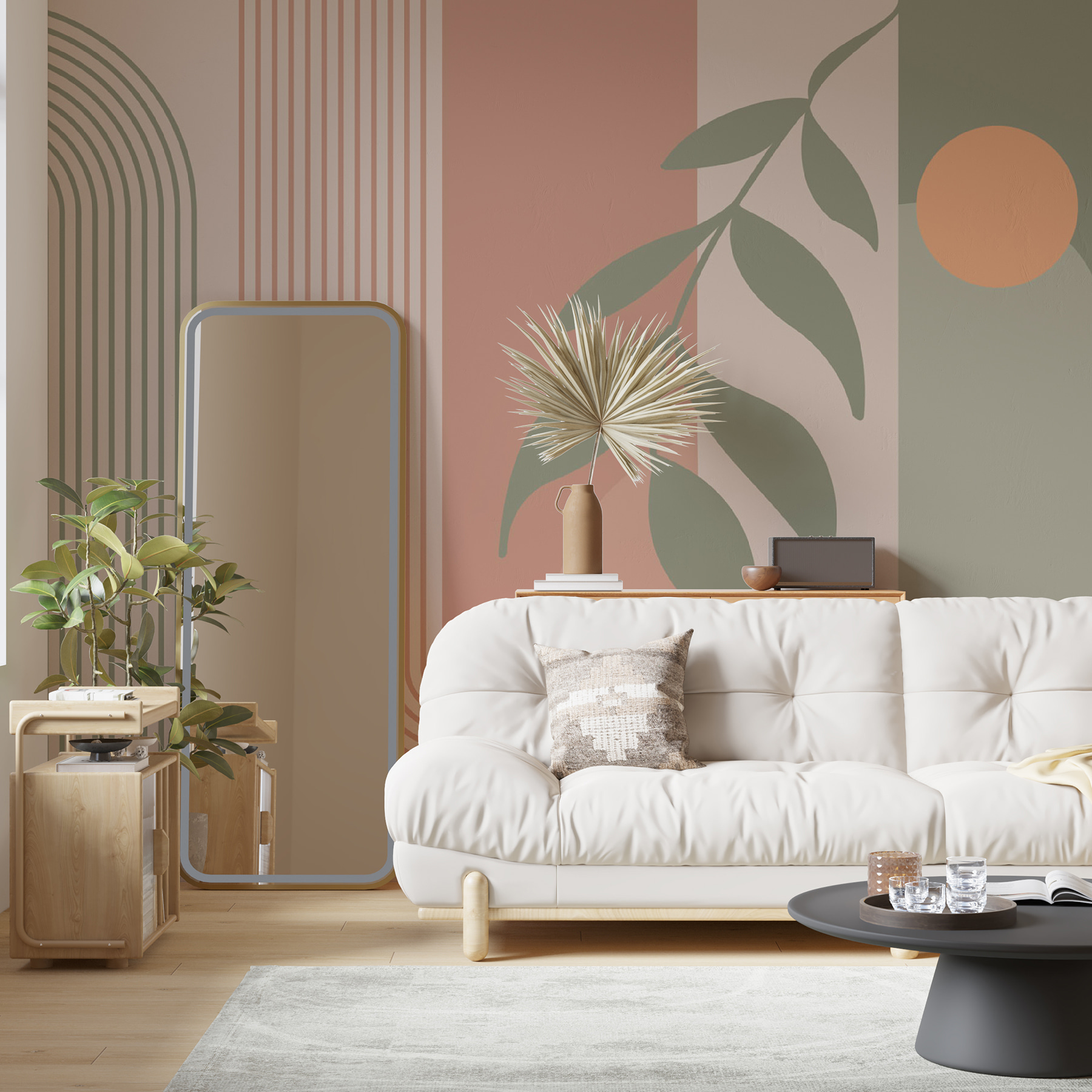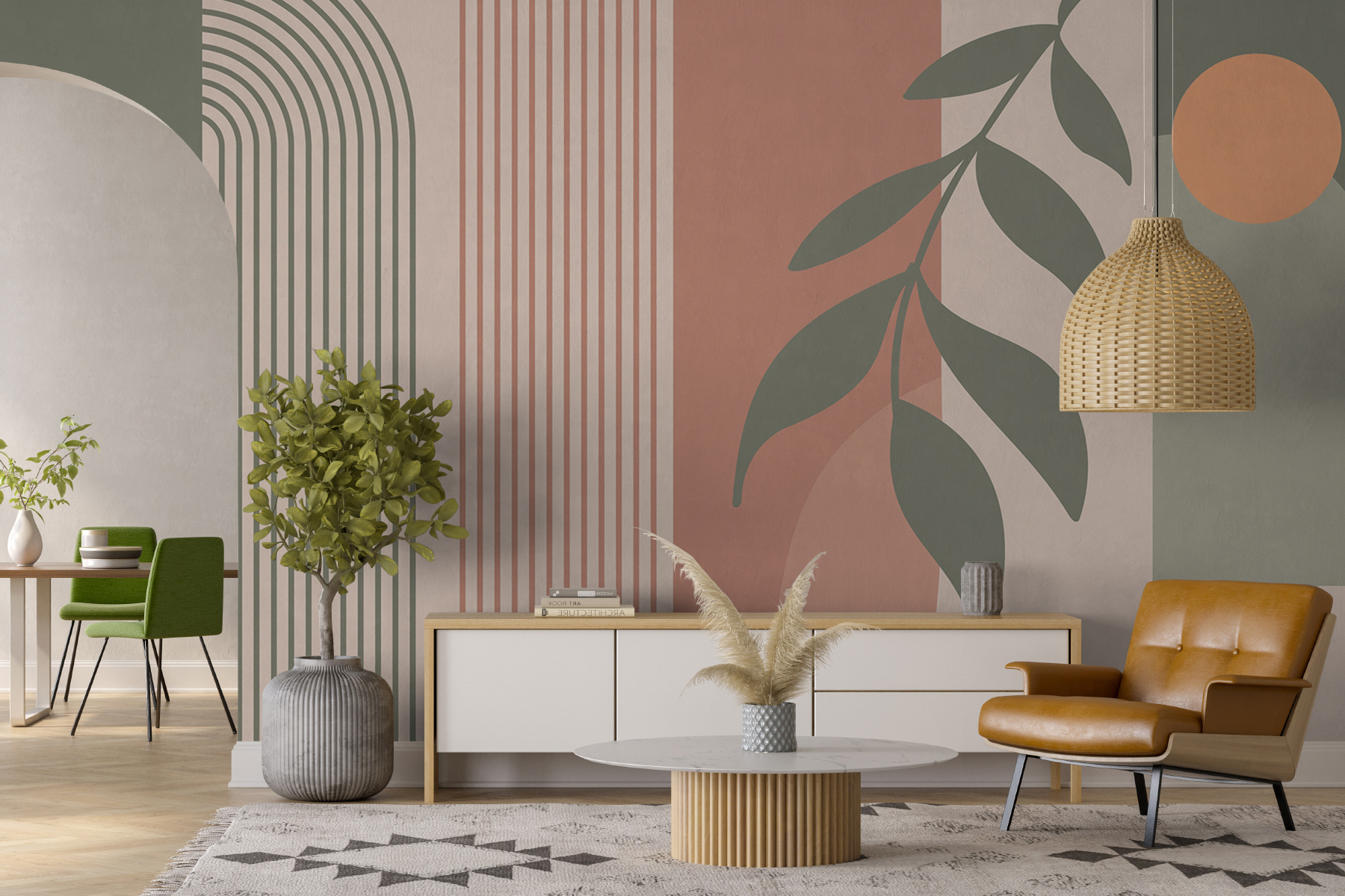 Aruncați o privire la această pictură murală uimitoare, “Frunze abstracte și modele geometrice”. Este ca un amestec cool de artă modernă chiar pe peretele tău! Serios, tonurile pământii și formele elegante emană această vibrație confortabilă, dar sofisticată – perfectă pentru orice cameră. Imaginează-ți că te relaxezi după o zi lungă, iar spațiul tău se simte zen și elegant. Este ca și cum ai avea propria ta galerie de artă. În plus, nu este doar elegant, este și un bun subiect de conversație. Prietenii vin pe la tine și bum, toată lumea vorbește despre gusturile tale grozave. Un mix perfect de calm și șic!