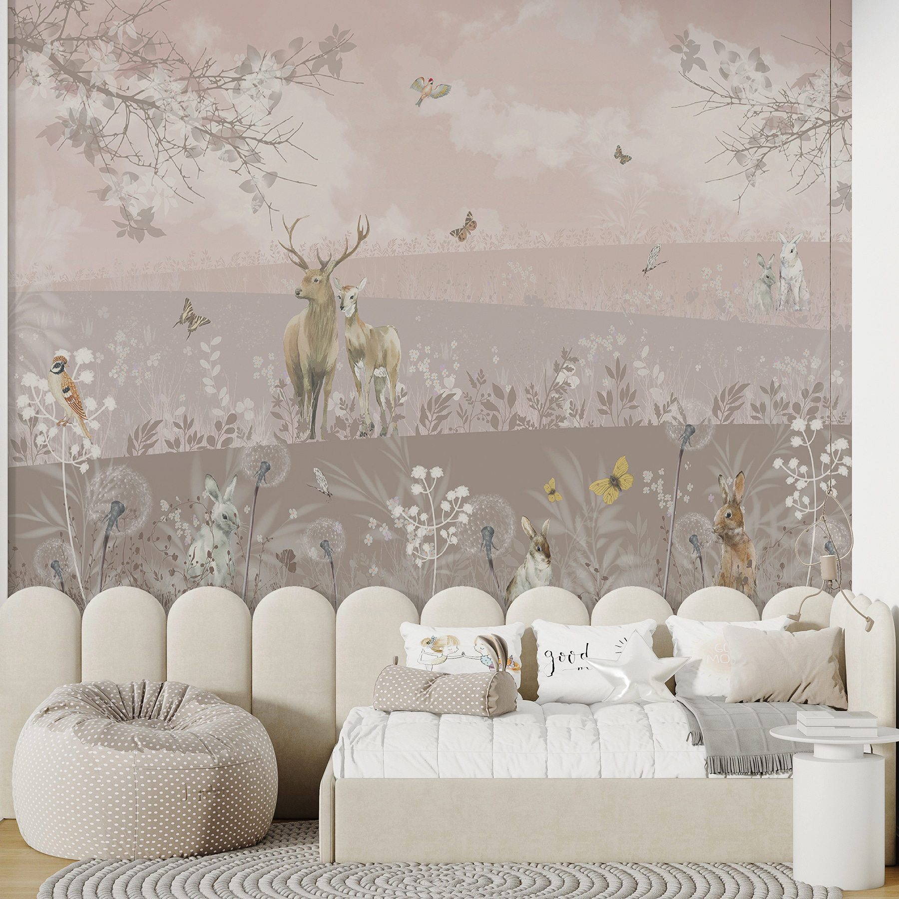 Imaginați-vă că intrați într-o cameră care seamănă cu o pădure de vis, în care căprioarele și iepurii își petrec timpul în liniște, total nepăsători față de lume. Aceasta este vibrația pe care o veți obține cu pictura murală “Cerbi și iepuri într-un peisaj senin”. Este perfectă pentru a transforma orice spațiu într-un refugiu calm. Fie că este pentru camera unei fiice, un colț confortabil sau chiar camera de zi, această pictură murală aduce frumusețea naturii în interior. Te vei trezi visând cu ochii deschiși, imaginându-ți briza moale și foșnetul frunzelor, în timp ce îți bei cafeaua de dimineață. Cu nuanțele sale blânde și viața sălbatică adorabilă, practic imploră pentru o carte bună sau un timp de liniște. Așadar, dacă dorești să adaugi puțină magie pereților tăi, aceasta este soluția ta. În plus, cine nu și-ar dori un pic de magie din pădure chiar la el acasă?