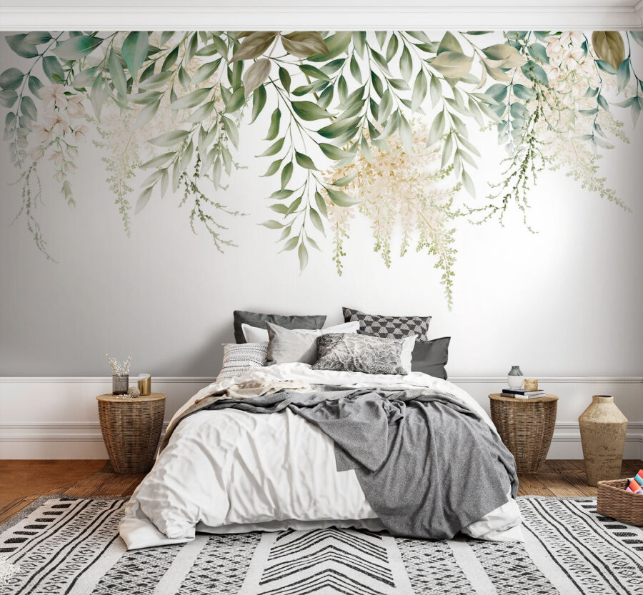 Imaginați-vă că pășiți într-o cameră și sunteți întâmpinați de frunze grațioase și flori care cad în cascadă pe perete, ca o perdea blândă a naturii. Această imprimare “Fototapet Elegant Leaves and Flowers” nu este doar decor, este o gură de aer proaspăt. Felul în care verdele și albul joacă împreună – este ca o grădină liniștită care nu are nevoie niciodată de udare. Perfectă pentru a face o declarație în spațiul dvs. de locuit sau pentru a aduce o notă de seninătate într-un spațiu de lucru agitat. Sincer, este ca și cum ai avea propria ta oază interioară! Și partea cea mai bună? Nu este nevoie de degetul verde. Ar fi greu să nu te simți puțin mai zen cu această frumusețe prin preajmă.