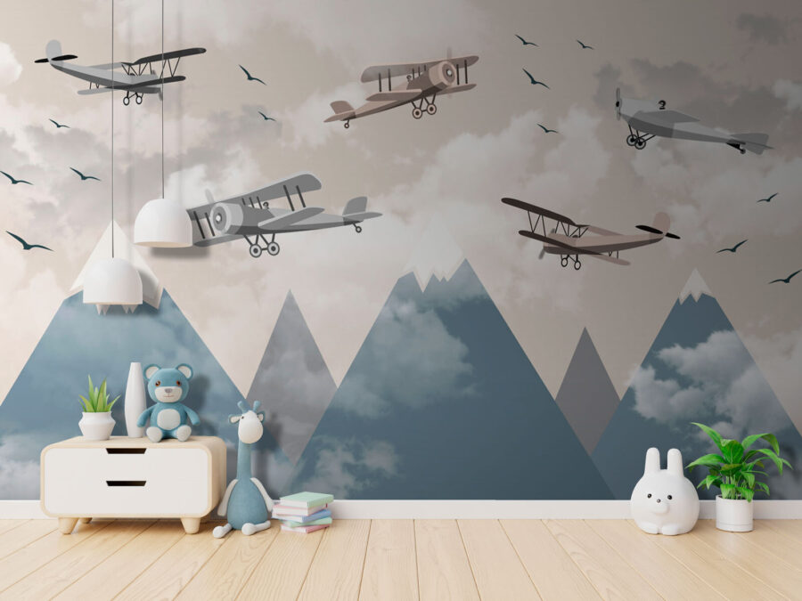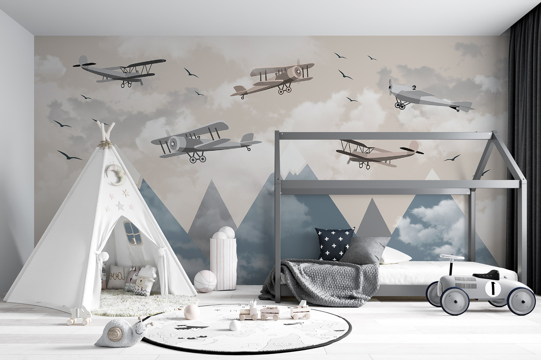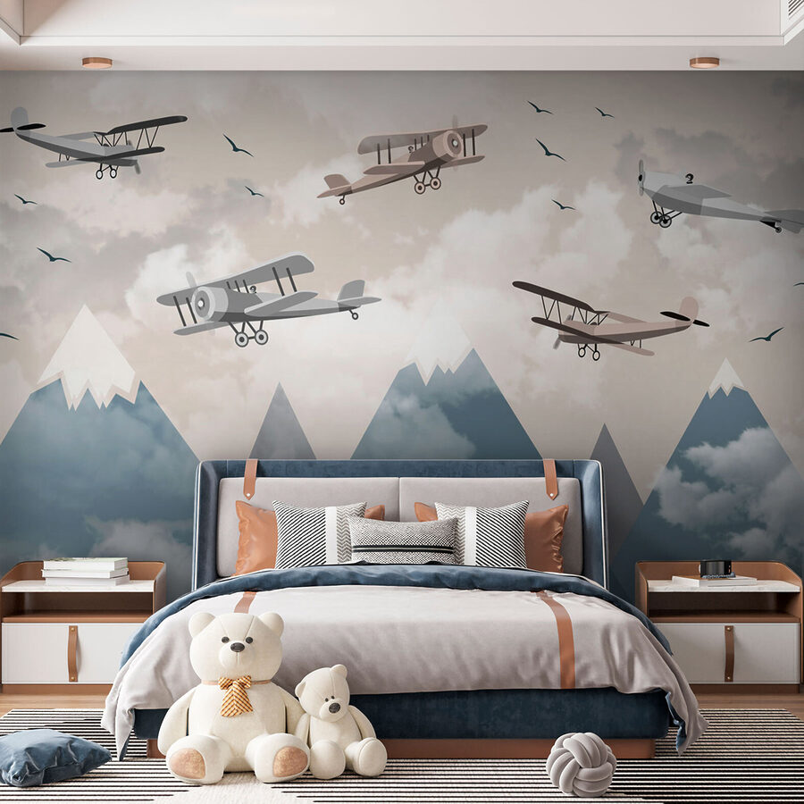 Imaginați-vă că intrați în spațiul dvs. și simțiți că tocmai ați pășit în fantezia unui aviator visător. “Fototapet Biplanes Soaring Above Snowy Peaks” vă transportă într-un loc unde cerul este limita – la propriu. Aceste fermecătoare biplane de epocă, care plutesc fără efort deasupra maiestuoșilor munți acoperiți de zăpadă, adaugă o notă capricioasă oricărei camere. Perfecte pentru camera unui copil sau pentru un colț de lectură confortabil, vor stârni imaginația și poate chiar câteva visuri aventuroase. Aveți acasă un viitor pilot sau pur și simplu vă place decorul unic? Această pictură murală este exact ceea ce vă trebuie. Stați pe spate, relaxați-vă și lăsați pereții să spună o poveste.