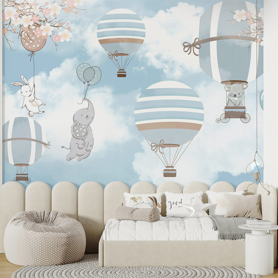 Aveți o cameră de copil care are nevoie de o notă de fantezie? Aruncați o privire la această pictură murală încântătoare care prezintă o mulțime de elefanți adorabili zburând în baloane cu aer cald. Imaginați-vă asta: albastru blând și gri moale, o paradă de pachiderme jucăușe și un fundal de cer capricios care pare un vis. Perfect pentru a stârni mirare și aventură fără sfârșit în spațiul oricărui micuț. Imaginați-vă ochii fiului dvs. luminându-se în timp ce adoarme sub elefanți veseli și baloane fermecătoare. Această pictură murală nu este doar decor – este o poartă către imaginație. Umpleți camera copilului dvs. cu bucurie și lăsați aventura să-și ia zborul!