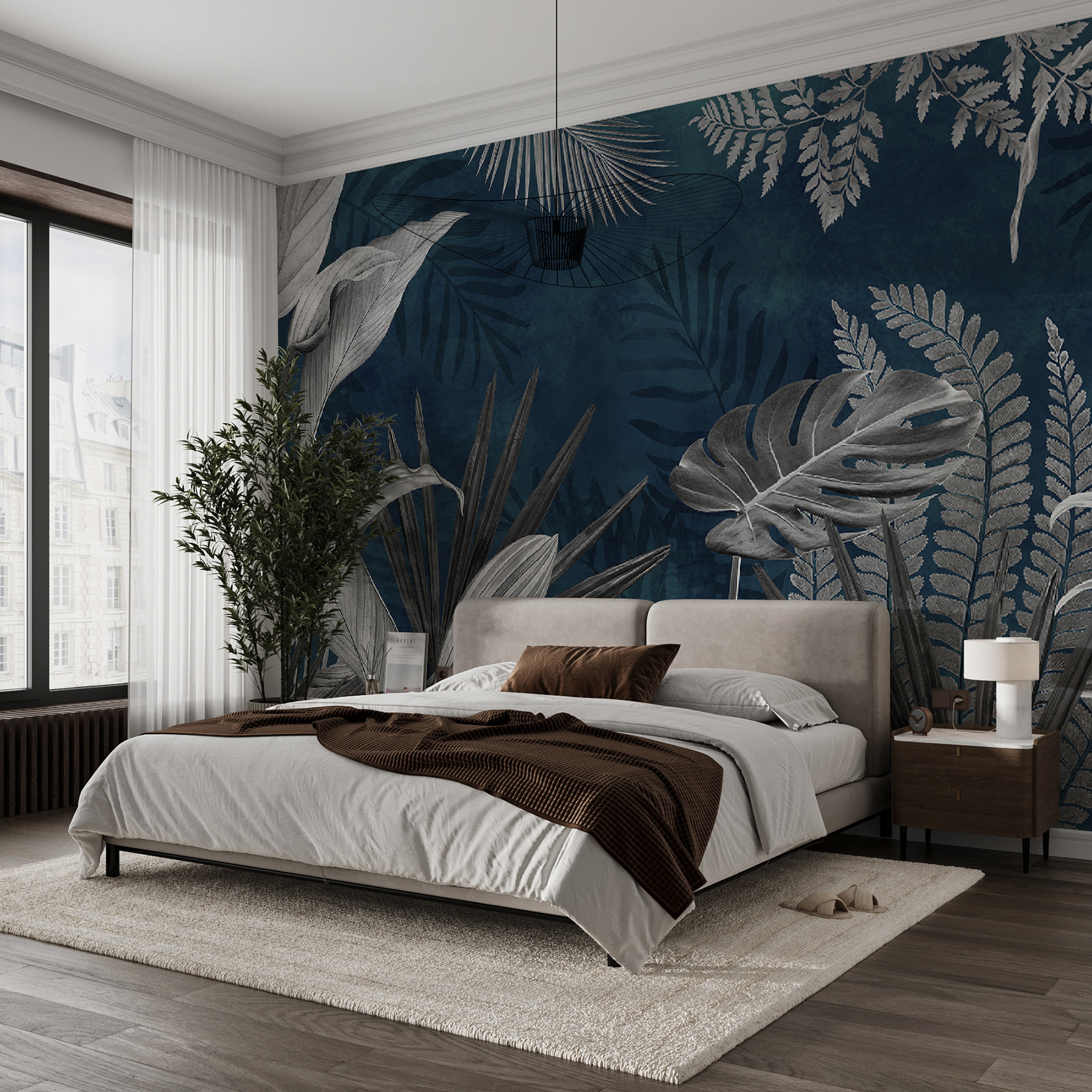 Perfect pentru cei care adoră natura, dar nu au neapărat degetul verde. Fundalul teal adaugă o notă sofisticată, făcând frunzele să iasă frumos în evidență. Știi, nu este doar o pictură murală – este o experiență. Ideală pentru meditație, relaxare sau pur și simplu pentru o perioadă de relaxare. În plus, oaspeții vor crede că este ultra-cool. Cine nu și-ar dori propria mică escapadă tropicală acasă?