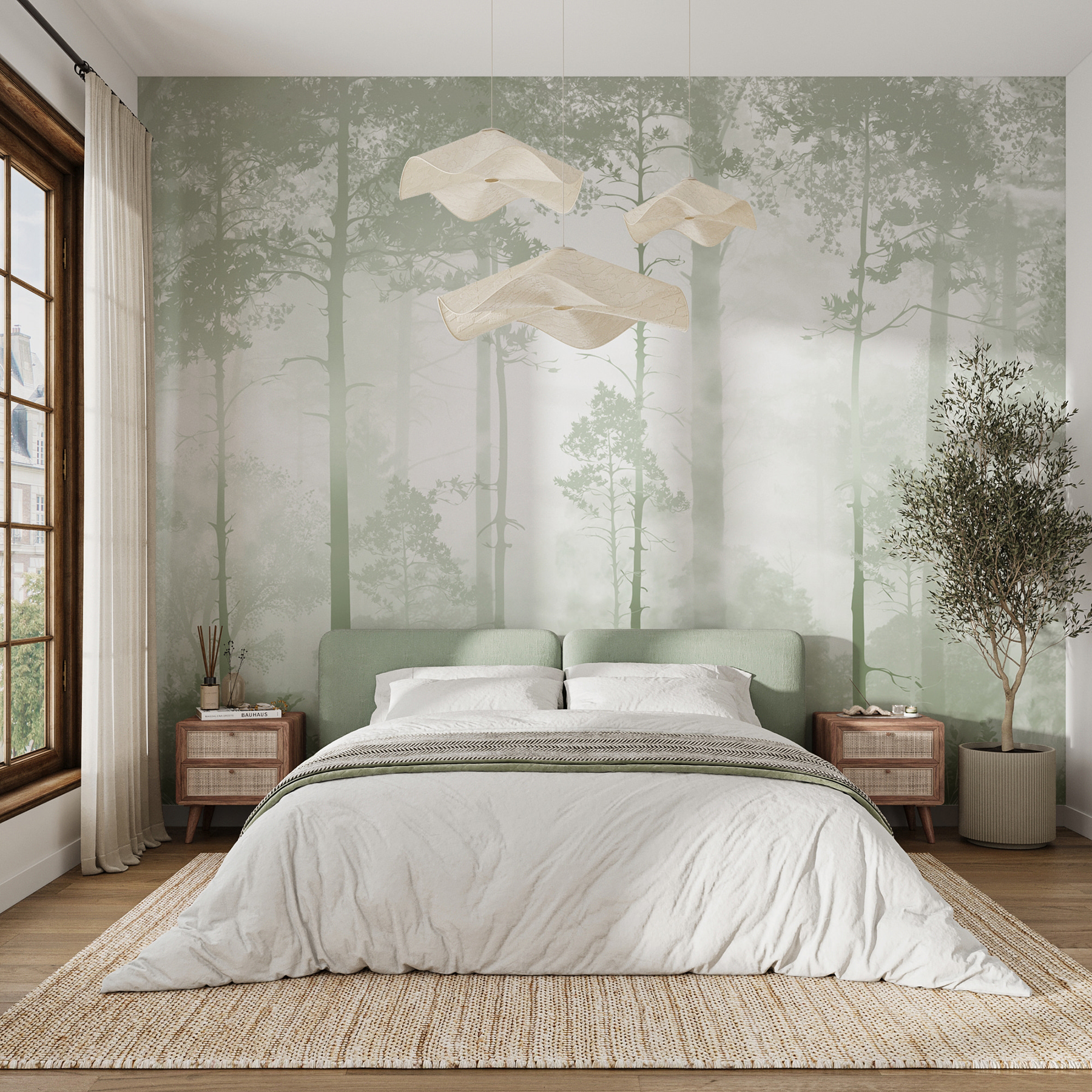 Transformați orice cameră într-un refugiu liniștit cu această pictură murală a pădurii cețoase. Imaginați-vă că vă treziți la vederea liniștită a copacilor înalți învăluiți în ceață, ca și cum ați păși într-un vis liniștitor. Nu este doar un perete; este o invitație de a respira aerul proaspăt al pădurii, chiar dacă sorbiți cafeaua în bucătărie. Imaginați-vă un colț de lectură confortabil, înconjurat de acest fundal senin – total perfect pentru a vă relaxa cu o carte bună. Și, hei, cine nu și-ar dori ca spațiul său să fie puțin mai magic? Cu verdele atenuat și modelele moi, este ca și cum natura s-a decis să stea în sufrageria ta. Perfect pentru momentele în care viața pare un pic prea haotică. Lăsați această pictură murală să aducă puțină pace în casa dvs.