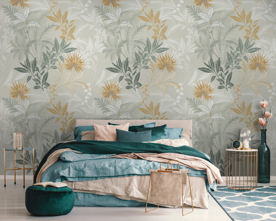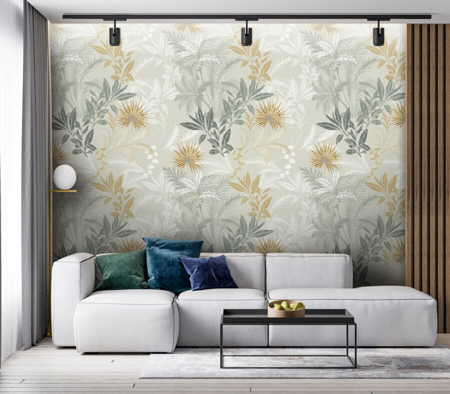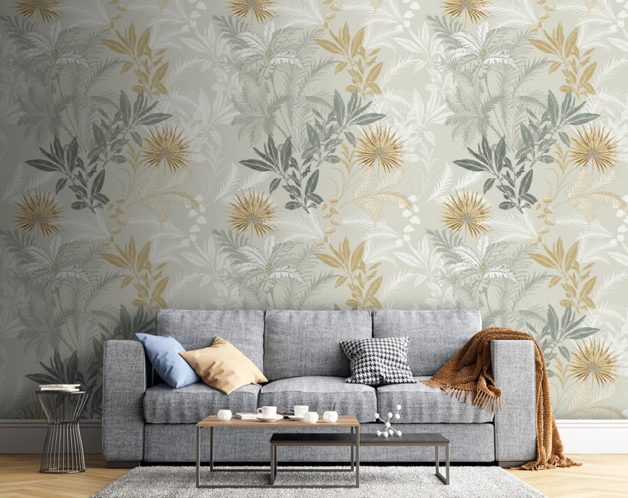 Transformați orice perete într-o evadare vibrantă cu această murală florală uimitoare. Imaginați-vă că pășiți într-o grădină plină de frunze detaliate și flori îndrăznețe – este ca și cum ați aduce natura înăuntru, fără stropitor. Verdele bogat și culorile calde creează o atmosferă primitoare, perfectă pentru a da viață unui colț de lectură confortabil sau pentru a atrage atenția într-o cameră de zi modernă. Prietenii o vor observa cu siguranță și probabil vor întreba de unde provine – puncte bonus pentru tine! Straturile de frunze dansează împreună, creând profunzime care face ca orice cameră să se simtă relaxată, dar veselă. Iubitorii de natură se vor simți ca acasă aici!