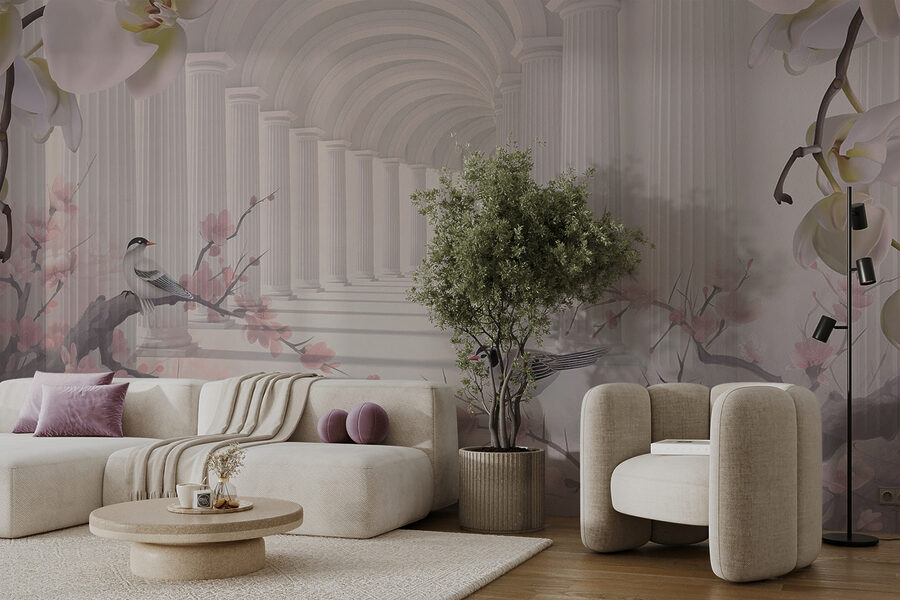 Imaginați-vă că treceți printr-o arcadă elegantă, înconjurați de flori înflorite și de șoaptele suave ale păsărilor – dar în propria cameră de zi! Această pictură murală “Arcadă elegantă cu flori înflorite” transformă orice spațiu într-o evadare de vis. Gândiți-vă la coloanele cremoase, la florile delicate și la păsărelele fermecătoare care creează o atmosferă liniștită. Este ca și cum ai păși într-o grădină de basm ori de câte ori intri în cameră. Perfect pentru oricine iubește o atingere de natură și un strop de frumusețe clasică. Aproape că veți simți briza blândă și veți prinde parfumul suav al florilor. Imaginați-vă că vă afundați în canapea cu o ceașcă de ceai, simțindu-vă ca într-o altă lume. Această pictură murală, cu vibrația sa senină și grațioasă, vă face să doriți să respirați adânc și să vă relaxați. Un adevărat punct de atracție pentru orice perete!