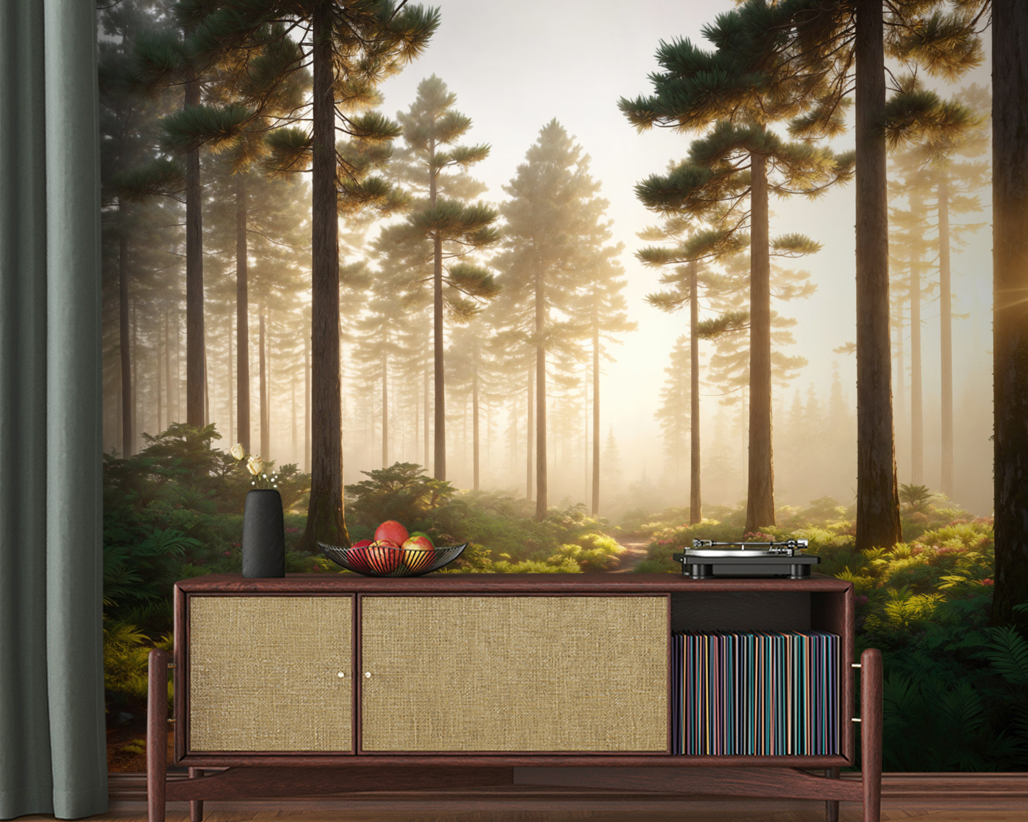 Transformați orice spațiu cu vibrațiile calme ale acestei picturi murale care prezintă o cărare de pădure senină la răsăritul soarelui. Imaginați-vă că vă treziți în fiecare dimineață în această scenă liniștită, în care lumina blândă se filtrează prin copacii înalți, creând o atmosferă confortabilă. Este ca și cum ați avea natura în casă, fără insecte și pantofi murdari de noroi. Imaginați-vă sorbind cafeaua, pierduți în gânduri în timp ce priviți această priveliște liniștită. Verdele vibrant și tonurile calde ar putea stârni un mic vis cu ochii deschiși despre rătăcirea în pădure. Perfectă pentru o cameră de zi sau pentru un colț de lectură confortabil, această pictură murală aduce exteriorul înăuntru, invitând la relaxare și la o atingere de magie.