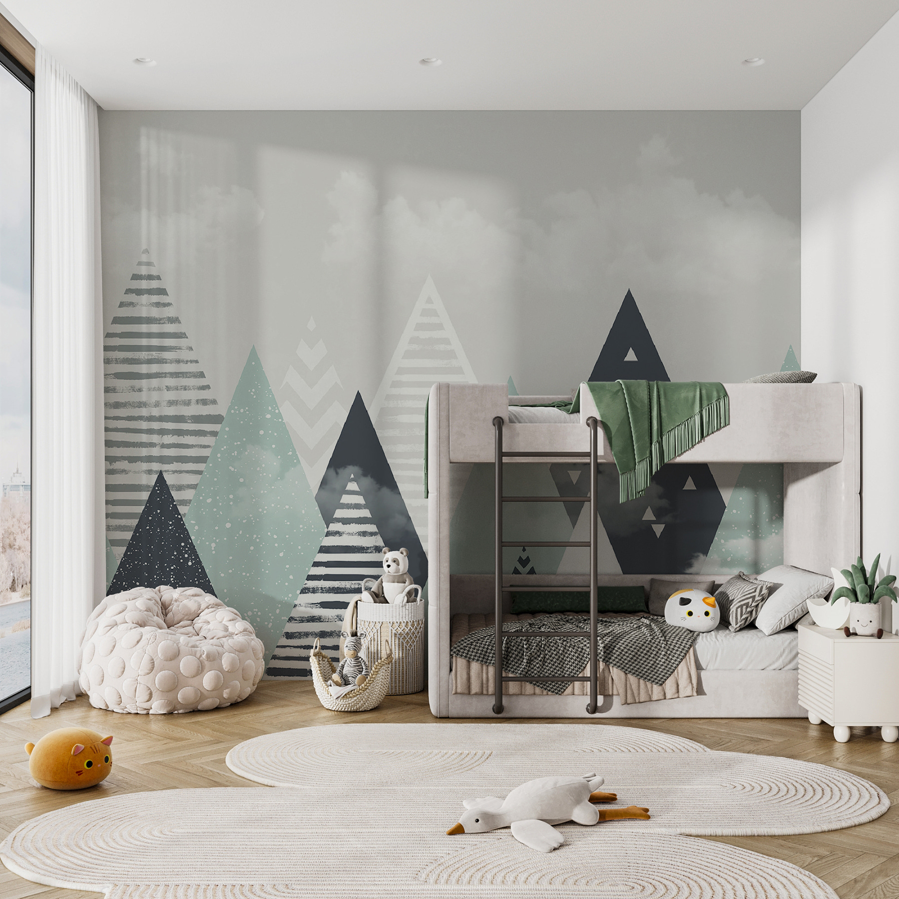 Este o pictură murală care spune: “Hei, hai să visăm cu ochii deschiși!” Fie că este pentru a se cuibări în timpul unei povești înainte de culcare sau pentru a se juca cu jucăriile lor preferate, această pictură murală creează un vibe calmant și creativ. Aproape că poți auzi șoaptele poveștilor și aventurilor care se vor desfășura în colțișorul tău confortabil, îmbrăcat în chevron. Transformați spațiul copilului dvs. într-un tărâm al minunilor în care imaginația lui poate zburda!