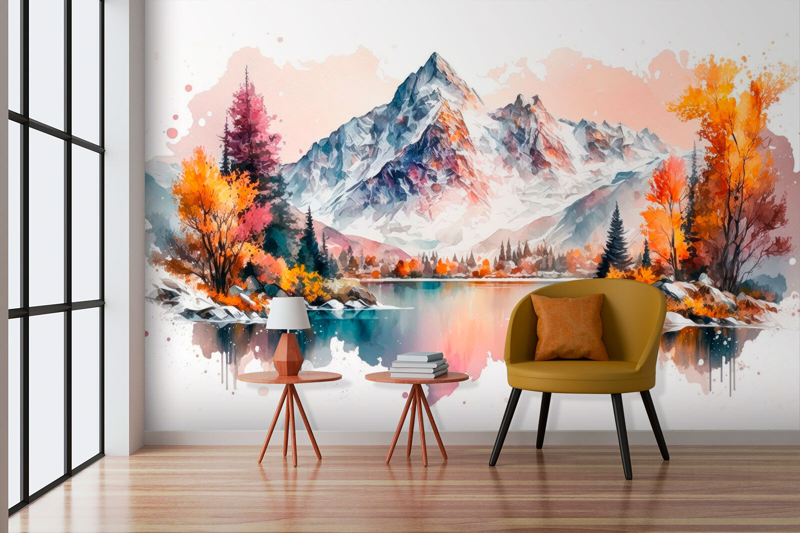 Imaginați-vă că intrați într-o cameră și vă simțiți instantaneu transportați pe un tărâm al minunilor – această pictură murală face exact asta. Cu pictura sa încântătoare a unui copac cu frunze portocalii vibrante, este ca și cum toamna a primit un upgrade și s-a mutat în interior! Perfectă pentru camera unui copil sau oriunde doriți să presărați un pic de peisaj montan magic – serios, această artă ar putea fermeca un yeti. Efectul de acuarelă adaugă o vibrație visătoare, făcându-l să se simtă aproape ca o îmbrățișare blândă din partea naturii însăși. Fie că sorbiți cafea sau aveți o petrecere secretă de ceai cu animale de pluș, acest mural este un fundal colorat care șoptește seninătate și aventură în același timp.