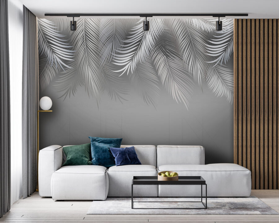 Imaginați-vă că pășiți într-o cameră în care peretele șoptește povești despre brize tropicale și după-amieze leneșe, însorite. Această pictură murală, cu frunzele sale grațioase de palmier pe un fundal gri moale, aduce o atingere de paradis în interior. Este ca și cum ai avea o mini evadare chiar la tine acasă. Gândiți-vă cum ar fi să vă relaxați cu o carte sau să sorbiți o ceașcă de cafea, în timp ce sunteți înconjurat de acest frunziș blând. De asemenea, este versatil – perfect pentru un dormitor liniștit, un living elegant sau acel colțișor confortabil în care curge creativitatea. Un pic de natură și multă liniște, toate învăluite într-un design uimitor. Cine nu s-ar simți relaxat aici?