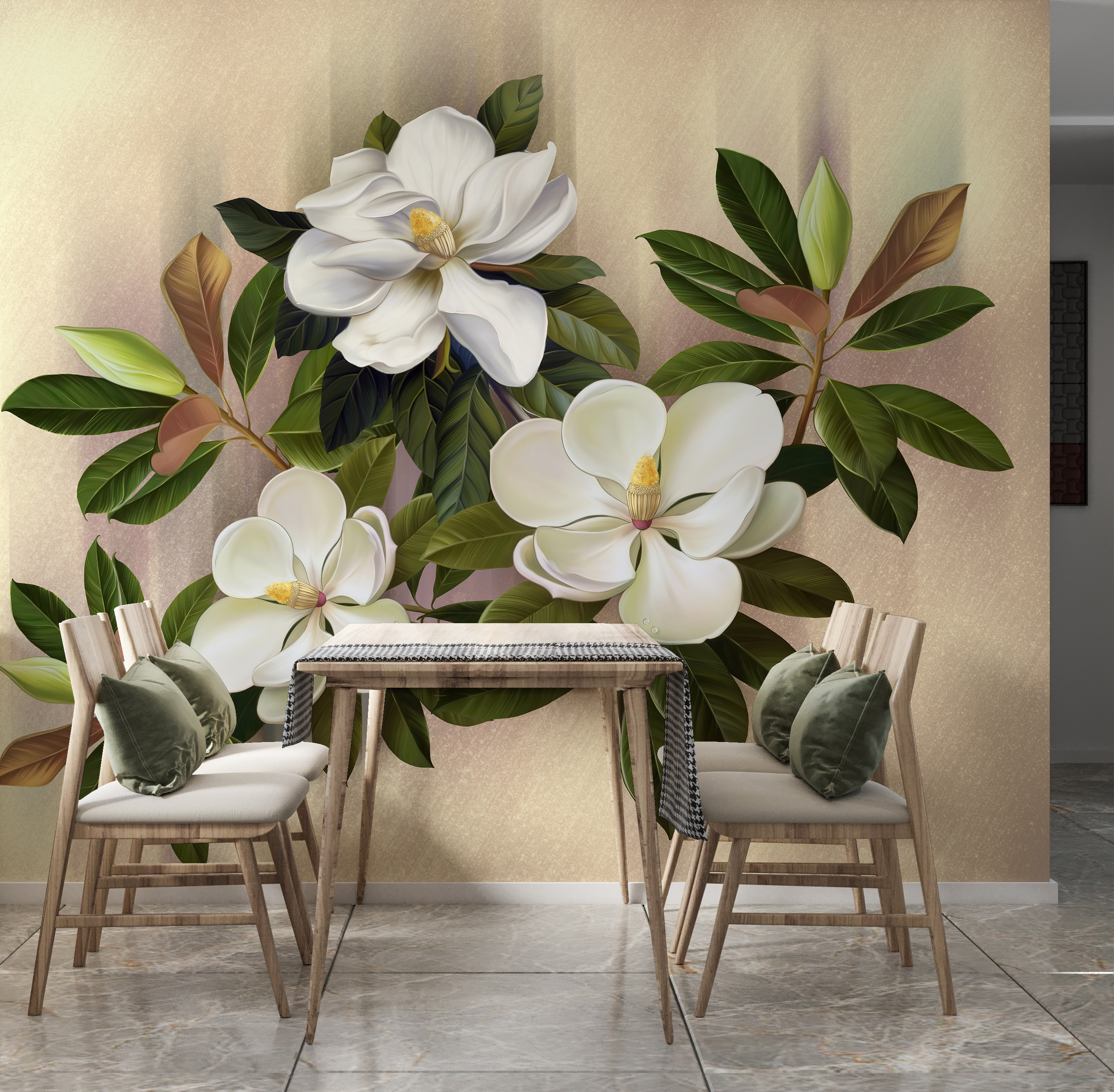 Transform any room into a vibrant oasis with the “Elegant Blooms with Lush Green Leaves” wall mural. Imagine stepping into your living space and being greeted by these stunning white flowers, practically begging for a second glance. It’s like bringing a garden indoors—minus the pesky bugs! Perfect for a cozy reading nook or that blank wall that desperately needs a story.