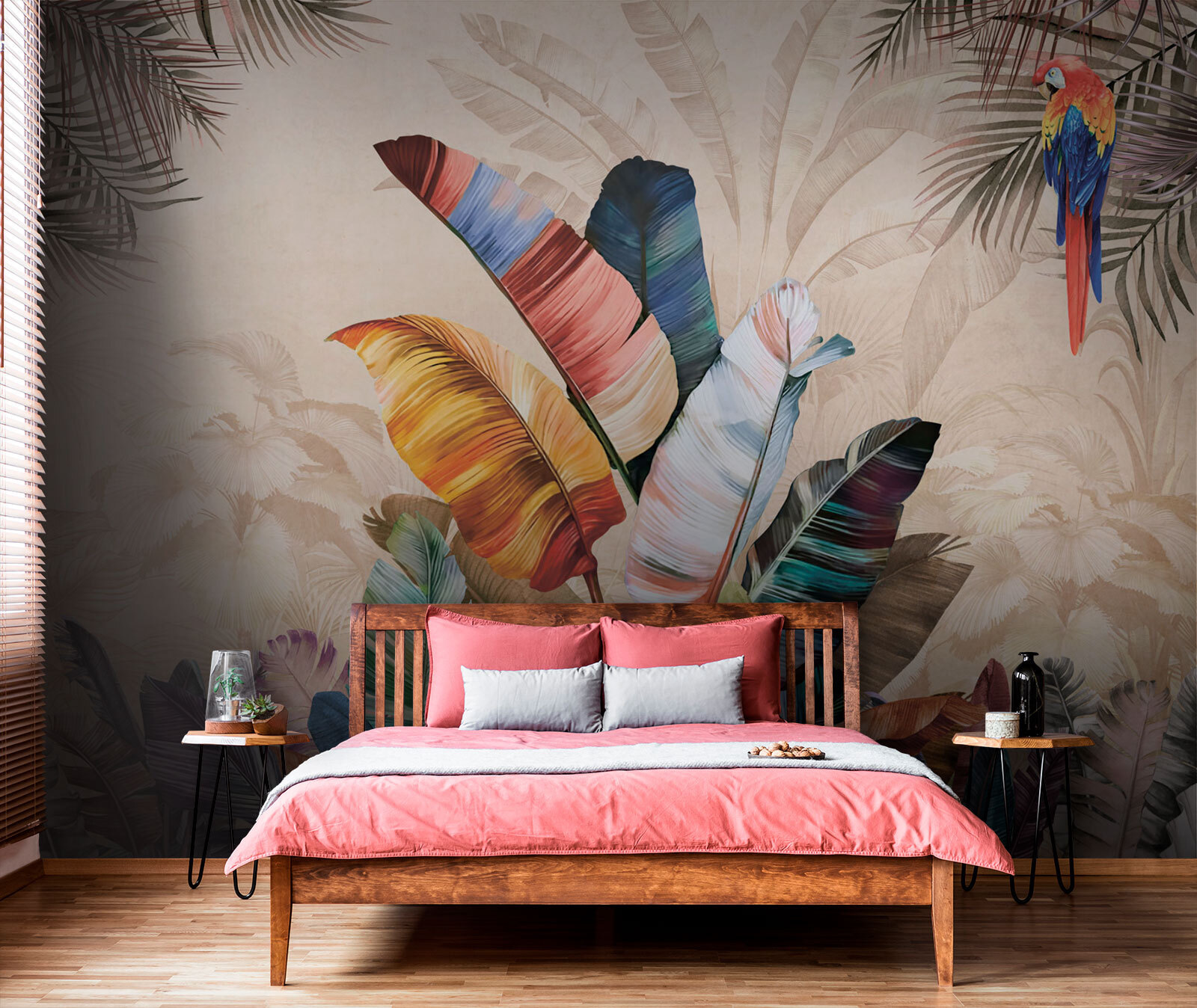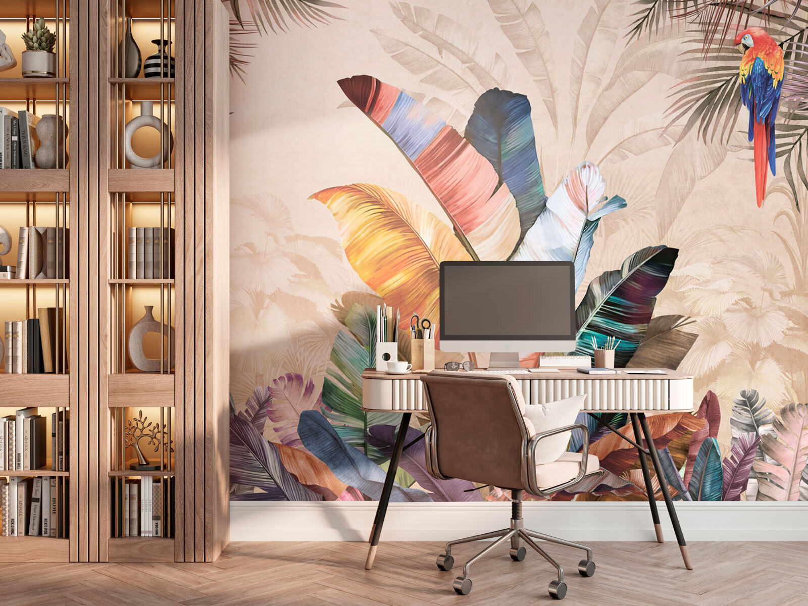 Transformați orice cameră într-o evadare tropicală cu această pictură murală vibrantă din junglă. Imaginați-vă că pășiți într-un paradis luxuriant în care frunzele de palmier dansează și un papagal colorat veghează. Este un fundal perfect pentru după-amiezele leneșe, discuțiile la cafea sau o explozie de inspirație în timp ce lucrați de acasă. Felul în care frunzele răsar pe fundalul moale face să vă simțiți ca vara pe tot parcursul anului. Prietenii vor crede că cineva a călătorit cu avionul, în timp ce tu doar stai și te bucuri de soarele zilnic, fără arsuri solare. Cine nu ar vrea să se simtă atât de aproape de natură fără să părăsească canapeaua?