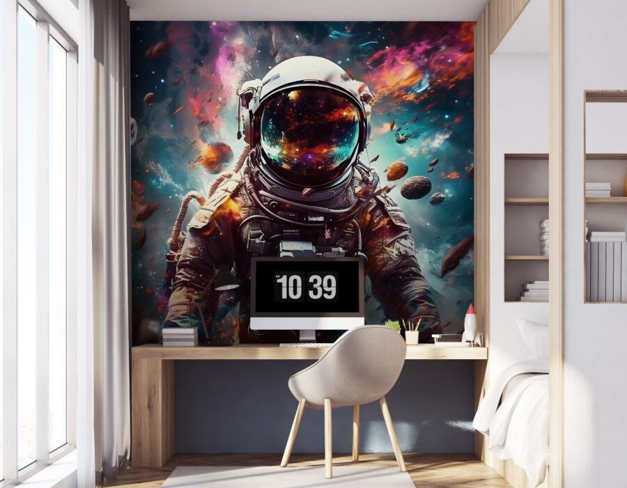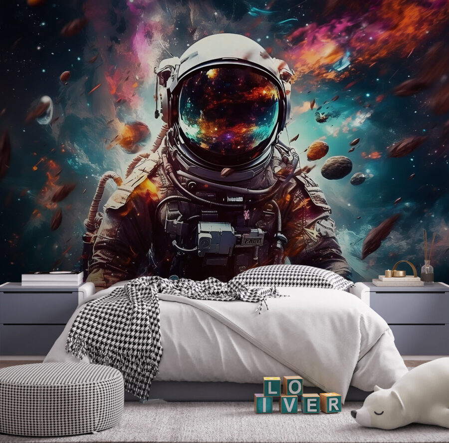 Imaginați-vă că aveți o bucată din spațiul cosmic chiar în camera dvs. de zi – sau, mai bine, în camera copilului dvs.! Această pictură murală a unui astronaut plutind printre resturi cosmice este de-a dreptul hipnotizantă. Nu este doar o decorațiune, este o aventură care așteaptă să se întâmple. Imaginează-ți micul astronaut privind culorile vibrante și galaxiile în vârtej, cu ochii mari de uimire. Este ca și cum ai fi transportat într-o altă lume, plină de mister și emoție! Perfect pentru visătorii de toate vârstele, va stârni imaginația și poate chiar câteva chicoteli despre ce fel de gunoaie spațiale plutesc acolo sus. Un starter de conversație cu siguranță și o evadare de vis pentru orice cameră care are nevoie de o notă cosmică.