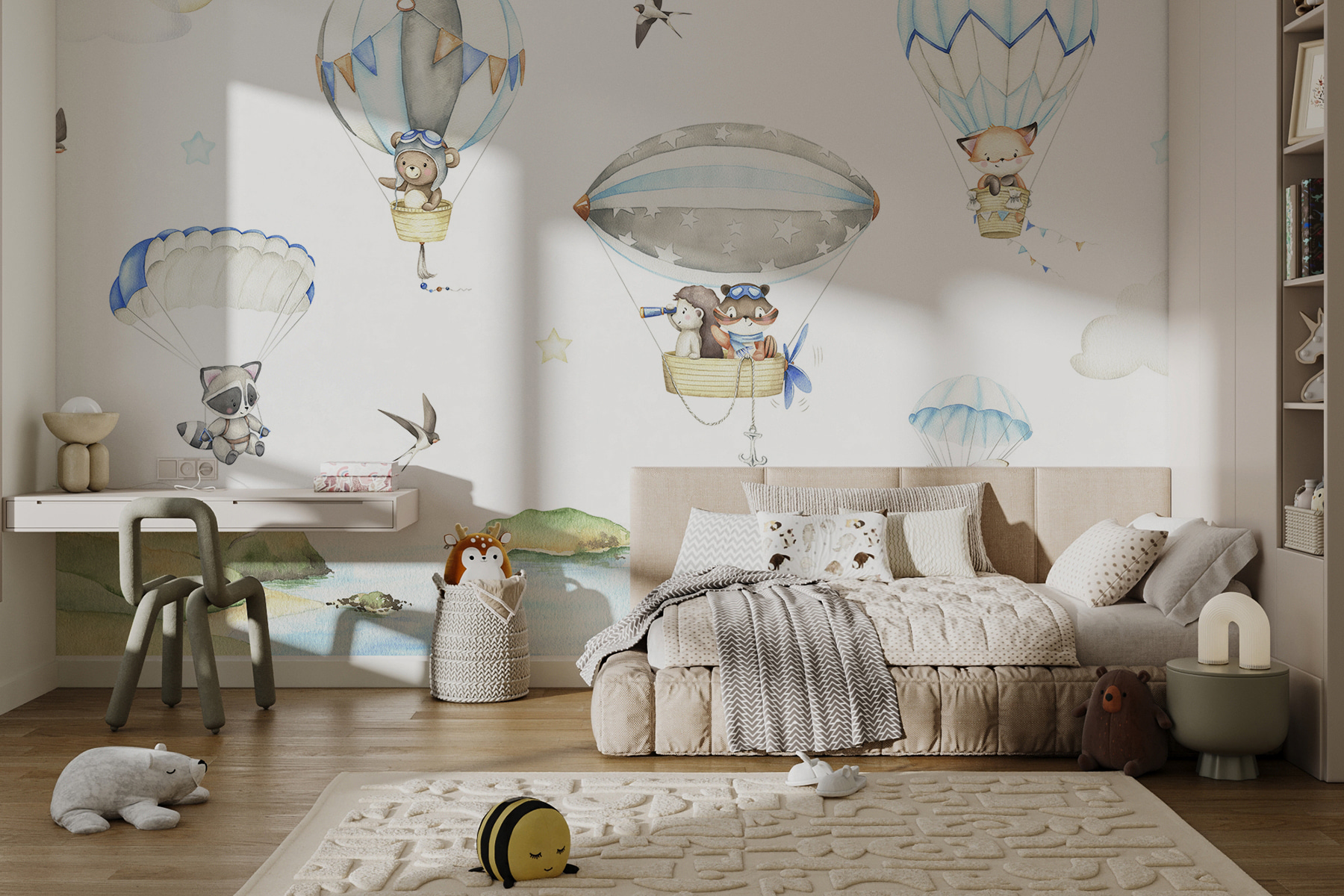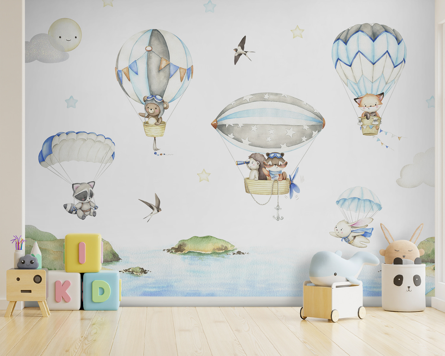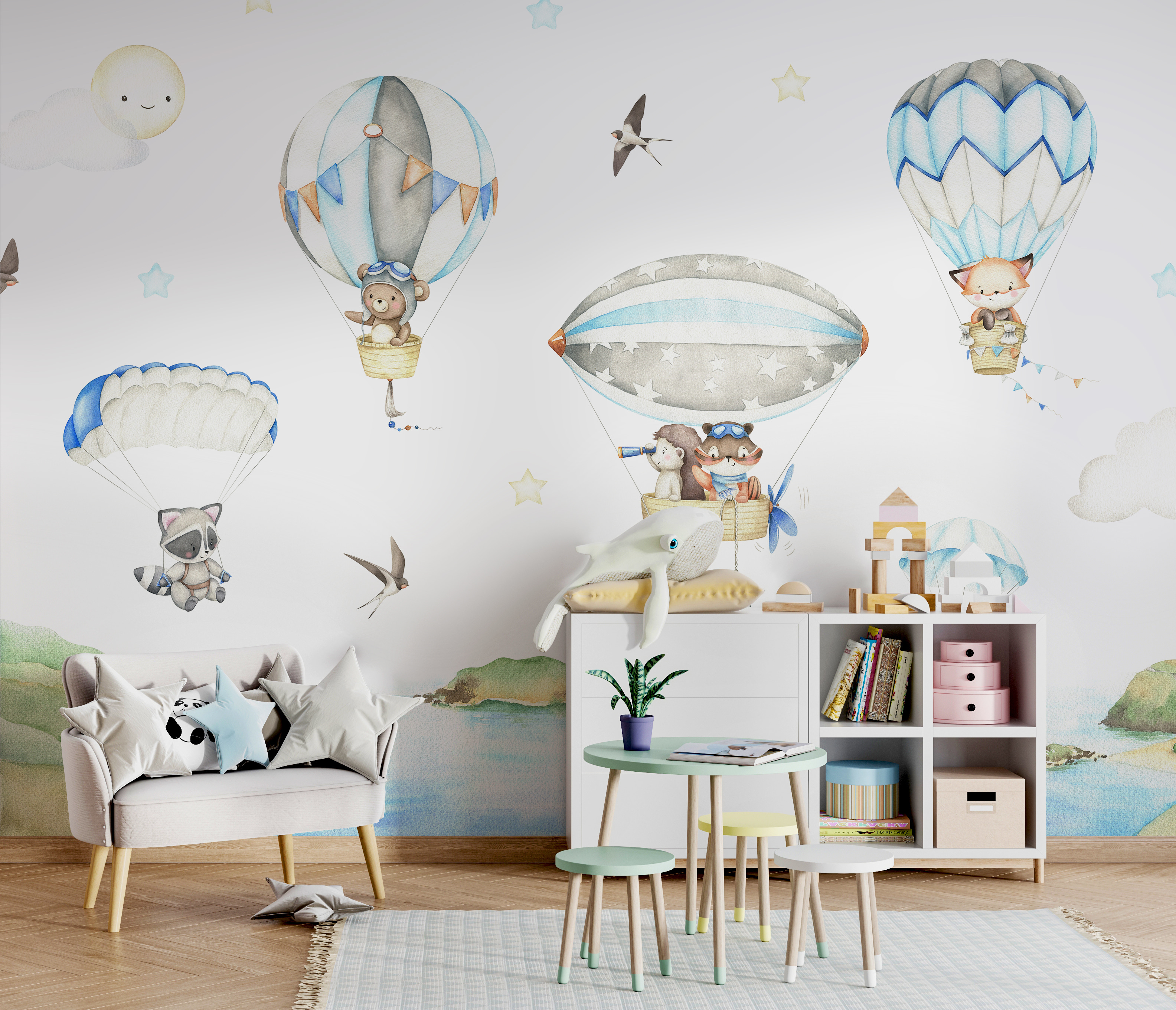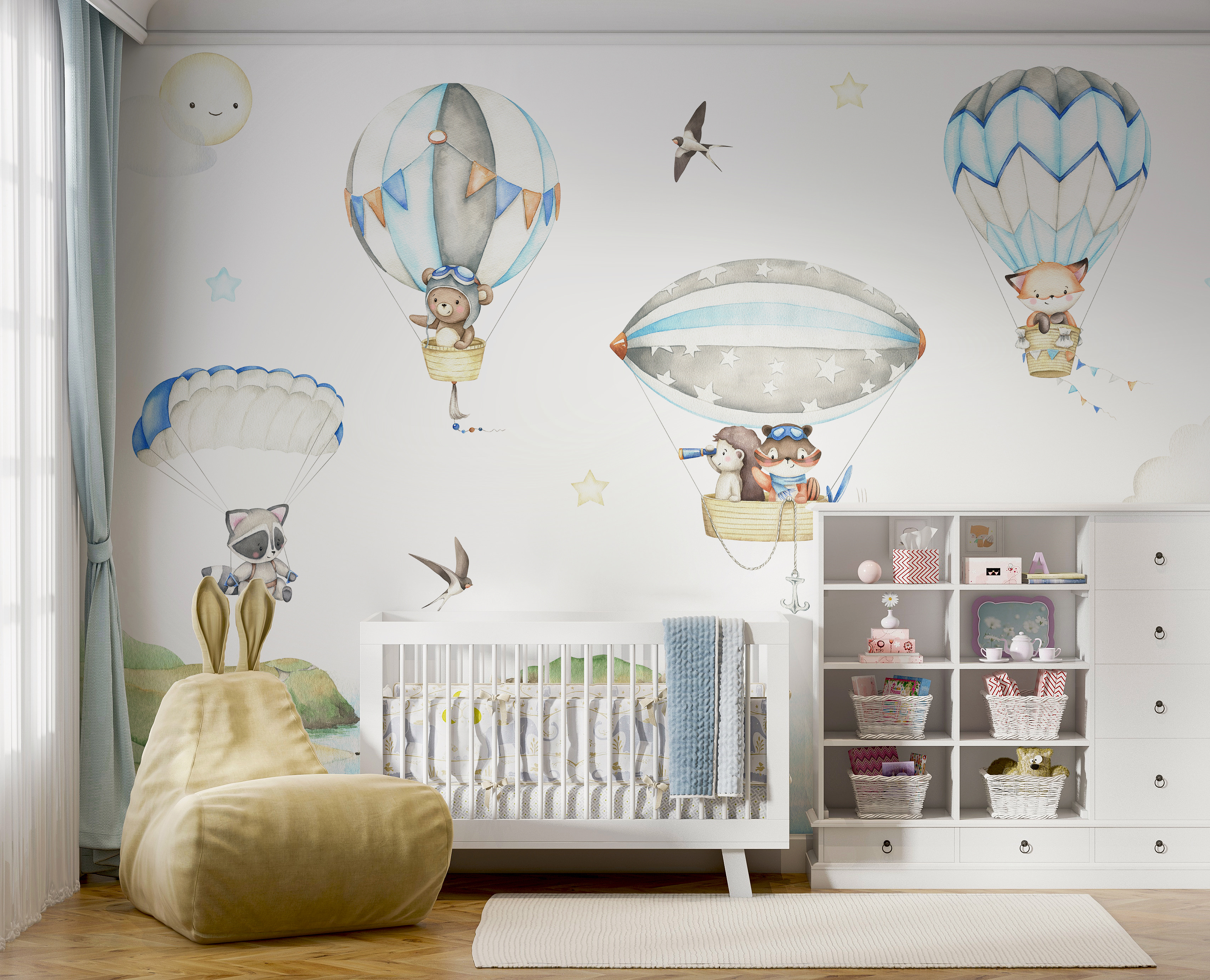 De ce să vă mulțumiți cu niște pereți simpli când îl puteți duce pe micuțul dvs. într-o aventură cu această pictură murală adorabilă? “Ursuleț de pluș într-un balon cu aer cald” este pur și simplu prea drăguț pentru a rezista. Imaginați-vă un ursuleț de pluș dulce, îmbrăcat în ochelari de aviator, plutind ușor pe cer. Farmecul acestei scene de vis este perfect pentru a stârni povești nesfârșite și pentru a liniști visele nocturne. Perfectă pentru creșe sau camere de copii, aceasta adaugă o notă jucăușă care este sigură și plăcută pentru ochi. Serios, cui nu i-ar plăcea să se trezească în fiecare dimineață? Se simte ca și cum ați intrat într-o carte cu imagini în care fiecare zi este o nouă aventură în cer. Pastelurile blânde și personajele capricioase asigură nu doar o atracție pentru ochi, ci și o stare de spirit. Camera copilului dvs. se transformă instantaneu într-un paradis confortabil și magic în care baloanele cu aer cald și visele înalte prind viață.