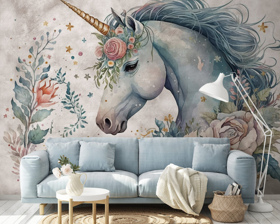 Imaginați-vă că intrați într-o cameră și sunteți întâmpinați de un unicorn uimitor, blând, împodobit cu flori delicate – da, asta face acest mural încântător. Perfectă pentru dormitorul unui copil sau chiar pentru un colțișor de lectură ciudat, este ca și cum ai aduce la viață un basm chiar pe peretele tău. Aproape că puteți simți magia din aer, cu aceste nuanțe pastelate subtile și detalii florale complexe. Nu este doar un decor; este o experiență. Prietenii care trec pe aici s-ar putea să se piardă în aceste detalii de vis, găsind flori sau stele noi de fiecare dată când se uită! În plus, este un starter de conversație fabulos. Copii? Vor fi în culmea fericirii – poveștile de culcare tocmai au primit un fundal magic. Această pictură murală este ca o zână bună pentru peretele tău, împrăștiind praf de basm peste tot unde atinge. ✨
