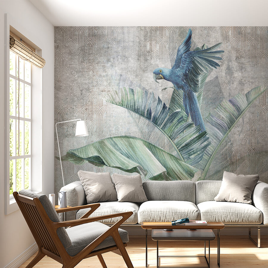 Imaginați-vă că intrați în sufragerie și sunteți întâmpinați de un papagal albastru uimitor cocoțat pe ramuri luxuriante, cu frunze. Această pictură murală este mai mult decât un simplu decor – este o evadare tropicală. Albastrul vibrant al papagalului iese în evidență pe un fundal de verde liniștitor, făcând ca spațiul dvs. să se simtă ca o oază de pădure tropicală. Este perfect pentru oricine iubește păsările sau are nevoie de un pic mai multă natură în viața sa. Imaginați-vă-o în sufragerie, adăugând un aer proaspăt cafelei de dimineață sau invitaților la cină, complimentându-vă stilul unic. În plus, are atingerea potrivită de eleganță, cu acele frunze de palmier care încadrează scena. De ce să vă mulțumiți cu pereți simpli când puteți avea o operă de artă care vă transportă în fiecare zi într-un paradis tropical?