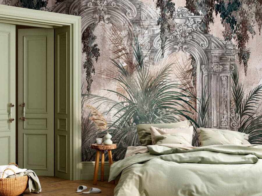 Transformarea unui spațiu într-un paradis tropical este mai ușoară cu această pictură murală uimitoare. Imaginați-vă că pășiți într-o junglă luxuriantă chiar din camera dvs. de zi – această operă de artă vă invită să evadați din realitate, chiar dacă doar pentru o clipă. Arcul detaliat încadrează o scenă vegetală frumoasă, îmbinând fără efort eleganța cu natura. Este ca și cum ai avea o bucată personală de paradis pe peretele tău! Imaginați-vă prietenii admirând-o, comentând despre modul în care luminează instantaneu atmosfera. Perfect pentru cei care iubesc o notă de sălbăticie fără întreținerea plantelor adevărate. Cine ar fi crezut că arta murală poate stârni atâta bucurie?