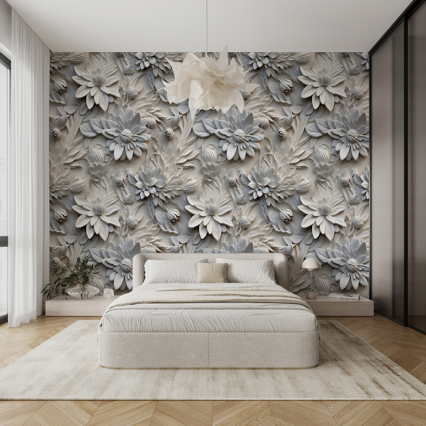 Aveți straturi de flori complicate, aproape 3D, care ies în evidență suficient cât să vă atragă atenția, dar se integrează atât de bine. Este ca și cum te-ai uita la o sculptură magistrală, dar pe peretele tău! Imaginează-ți cum îți sorbi cafeaua de dimineață, simțind că o savurezi în propria ta grădină secretă. Este proaspătă, se simte vie, dar este și liniștită. Îndrăznesc să spun, aproape terapeutic?