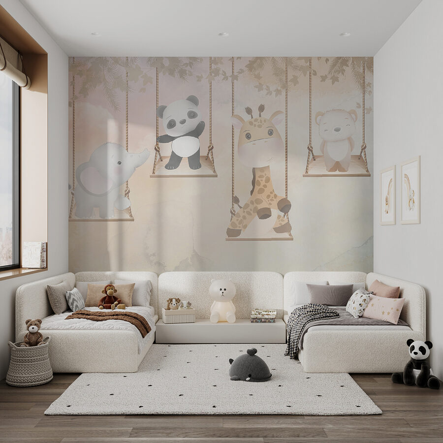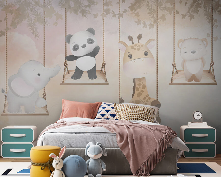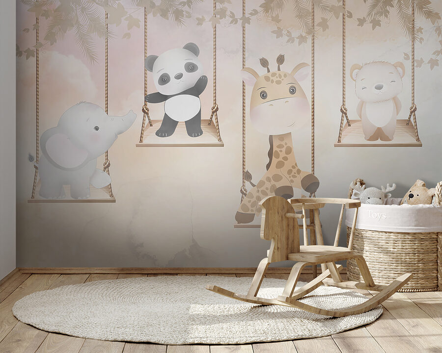 Aruncați o privire la această pictură murală încântătoare numită “Picturi murale Girafă stând pe un leagăn cu frânghie”. Perfectă pentru a adăuga un strop de fantezie în camera unui copil, această pictură murală prezintă o girafă drăguță care se relaxează pe un leagăn, înconjurată de animale adorabile precum un panda, un elefant și un urs. Vă puteți imagina cât de încântător ar arăta aceasta în dormitorul unei fetițe? Sau chiar într-un colț jucăuș din camera de zi?