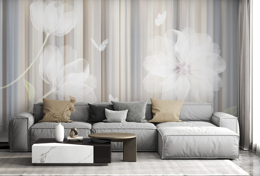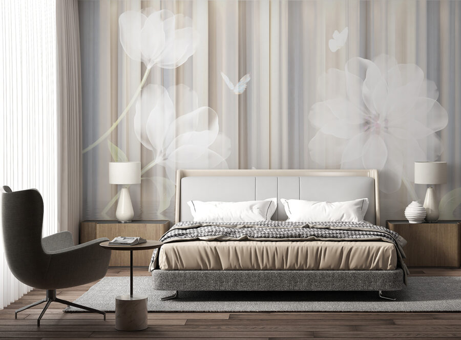 Transformați orice cameră într-o evadare liniștită cu această pictură murală florală de vis cu flori blânde și fluturi grațioși. Este ca și cum ai păși într-o grădină senină, unde fiecare privire invită la un moment de calm. Imaginați-vă că vă relaxați cu o carte bună, cu nuanțele suave care vă înconjoară, aproape ca o îmbrățișare confortabilă. Perfectă pentru o cameră de zi sau un colțișor liniștit, această pictură murală nu numai că adaugă frumusețe, dar creează și un vibe spațios. Este acea atingere încântătoare care îi face pe vizitatori să se oprească, să admire și poate chiar să viseze puțin. Cine ar fi crezut că pereții pot inspira astfel de visări frumoase?