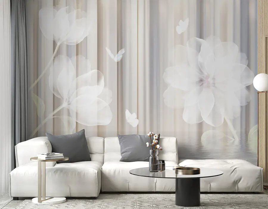 Transformați orice cameră într-o evadare liniștită cu această pictură murală florală de vis cu flori blânde și fluturi grațioși. Este ca și cum ai păși într-o grădină senină, unde fiecare privire invită la un moment de calm. Imaginați-vă că vă relaxați cu o carte bună, cu nuanțele suave care vă înconjoară, aproape ca o îmbrățișare confortabilă. Perfectă pentru o cameră de zi sau un colțișor liniștit, această pictură murală nu numai că adaugă frumusețe, dar creează și un vibe spațios. Este acea atingere încântătoare care îi face pe vizitatori să se oprească, să admire și poate chiar să viseze puțin. Cine ar fi crezut că pereții pot inspira astfel de visări frumoase?