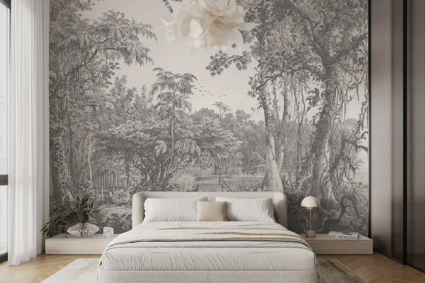 Imaginați-vă că pășiți într-o pădure chiar în camera dvs. de zi – este ca o magie! Această pictură murală “Desenul unei păduri” aduce farmecul pădurii direct pe pereții dvs. Veți obține copaci luxurianți, umbre misterioase și șoapta frunzelor care foșnesc – nu la propriu, dar aproape! Perfect pentru orice spațiu care are nevoie de o atingere a calmului naturii. Este ca și cum ai lua o mini-vacanță de fiecare dată când treci pe lângă ea. Fie că ești pasionat de design sau vrei doar ceva popular și confortabil, această pictură murală îți asigură spatele. Frumoasă și ușor de privit, și doar un pic de mirare pentru viața ta de zi cu zi.