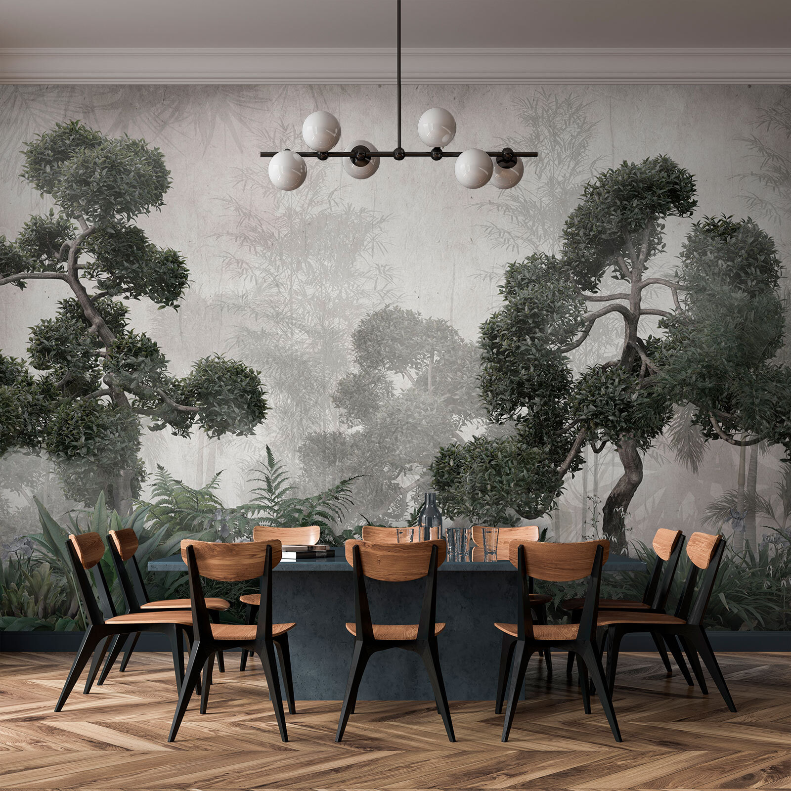 Imaginați-vă că vă deschideți sufrageria, dormitorul sau, sincer, orice spațiu, spre o scenă care pare a fi colțul secret al unei jungle fermecate – este pur și simplu magic. Această pictură murală “Copac cu multe ramuri” vă va scoate din rutina zilnică și vă va duce într-o oază în care frunzele luxuriante se întind și, practic, se aude ciripitul păsărilor (ei bine, aproape). Este ceva atât de crud și senin, încât s-ar putea să vă pierdeți în gânduri, în fiecare zi. Amestecul perfect de sălbatic și calmant este ca și cum natura ți-ar îmbrățișa ușor pereții. Imaginați-vă că vă sorbiți cafeaua de dimineață în timp ce vă admirați propria mini-pădure – cum ar fi să vă începeți ziua așa cum trebuie? În plus, este una dintre acele piese despre care invitații vor vorbi cu siguranță. Relaxați-vă, destindeți-vă și lăsați casa dvs. să respire ușor.