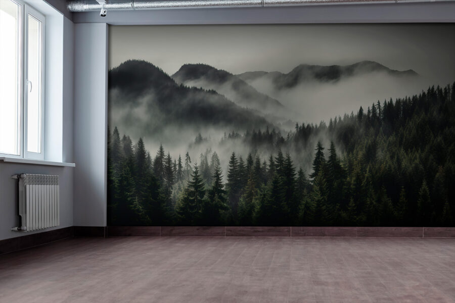 Imaginați-vă transformarea spațiului dvs. de locuit într-un paradis forestier senin cu această pictură murală uimitoare de copaci și munți cețoși. Este ca și cum ați păși într-un basm de fiecare dată când intrați în cameră. Perfectă pentru cei care iubesc viața în aer liber – fără a fi nevoiți să vă faceți griji cu privire la insecte sau vreme. Pădurea densă care se estompează în munții cețoși este pur și simplu magică, aproape ca și cum copacii își șoptesc secretele unul altuia.