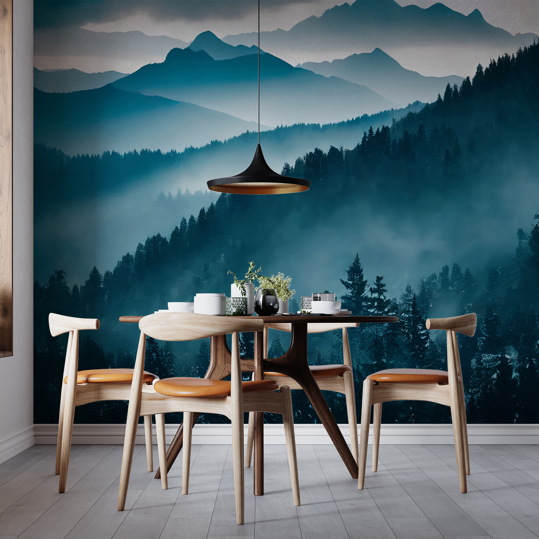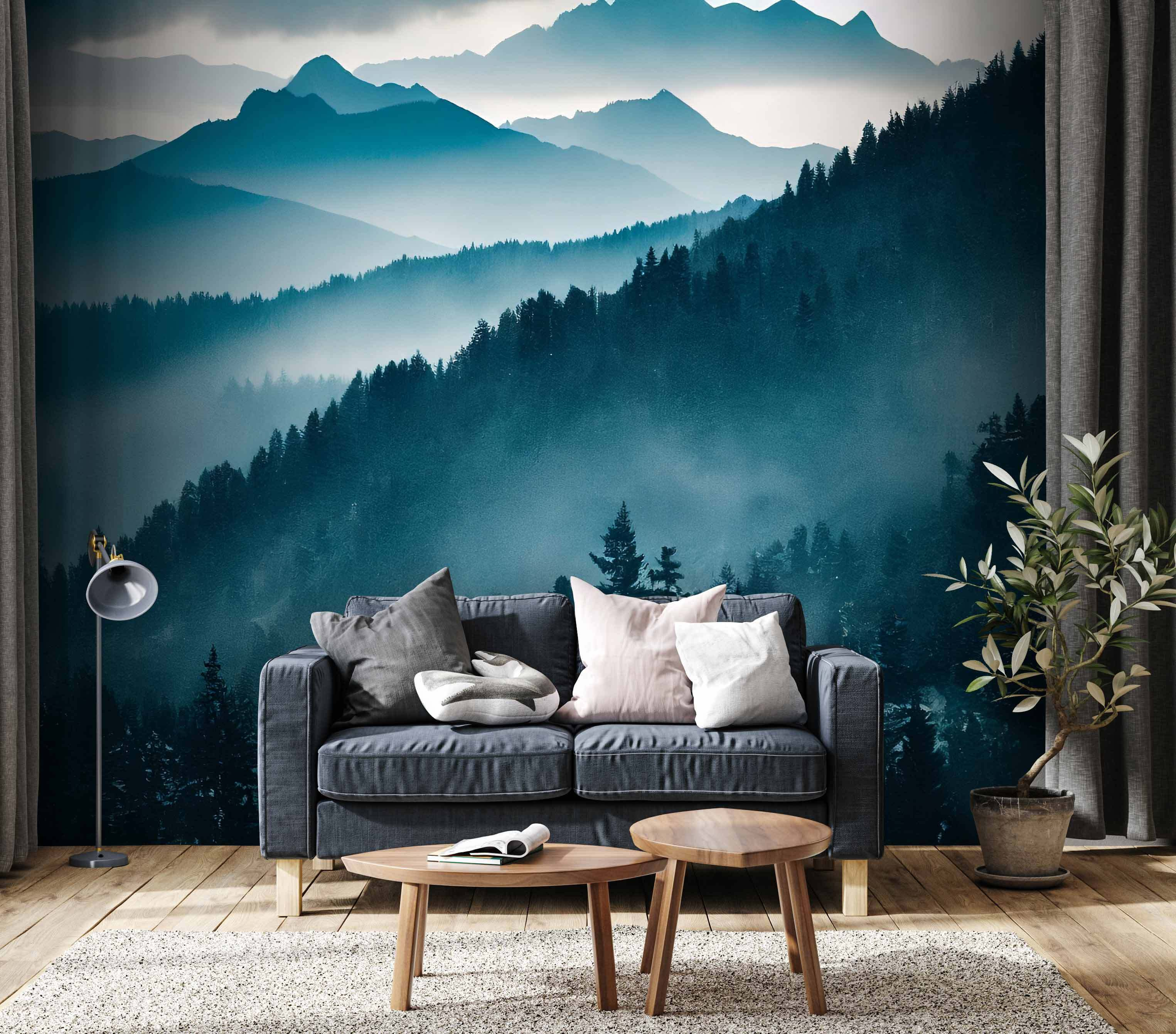 Imaginați-vă acest lucru: veniți acasă după o zi lungă, vă dați jos cizmele și vă pierdeți în scena liniștită a acestui mural. Este aproape ca și cum ai sta la marginea unei păduri senine, inhalând aer proaspăt de munte. Aproape că poți simți liniștea, poți auzi foșnetul slab al fulgilor de zăpadă care cad.