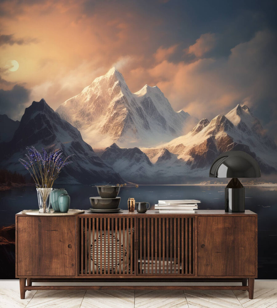 Imaginați-vă că pășiți într-o cameră și simțiți instantaneu răcoarea unei brize de munte înzăpezit, chiar în propria casă. Această pictură murală “Lanț muntos înzăpezit cu nori” este ca și cum ai avea o fereastră spre maiestuoasele Munți Stâncoși (fără degerături). Munții sunt atât de clare și dramatice, încât spun practic o poveste în sine. Perfect pentru a adăuga o notă de magie montană oricărui spațiu – un pic ca o mini-vacanță de fiecare dată când treceți pe lângă el. Fie că sunteți un iubitor al vieții în aer liber, fie că aveți nevoie doar de un fundal uimitor pentru serile dvs. confortabile, această pictură murală va face ca spațiul dvs. să strălucească și să vă ofere o evadare senină.