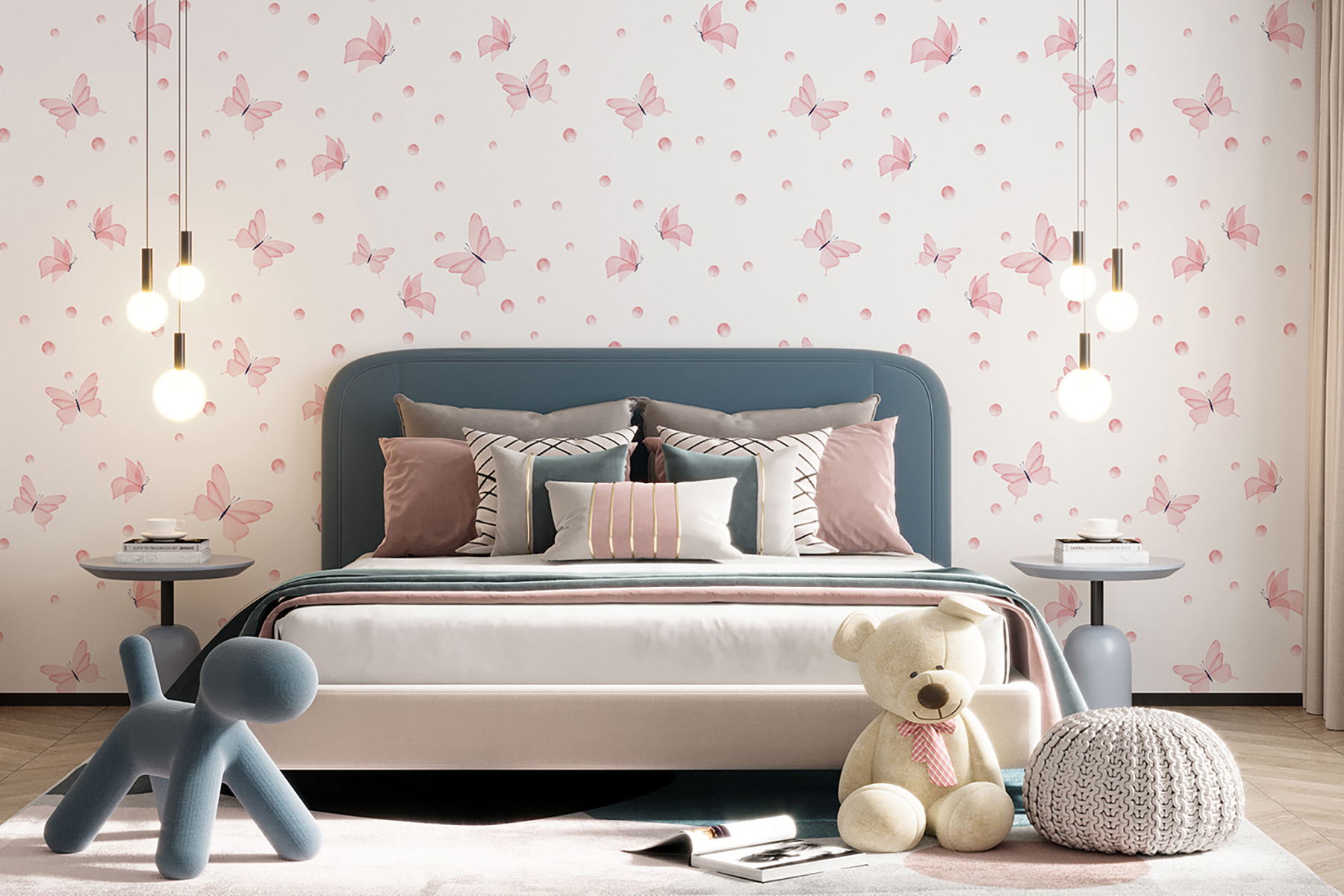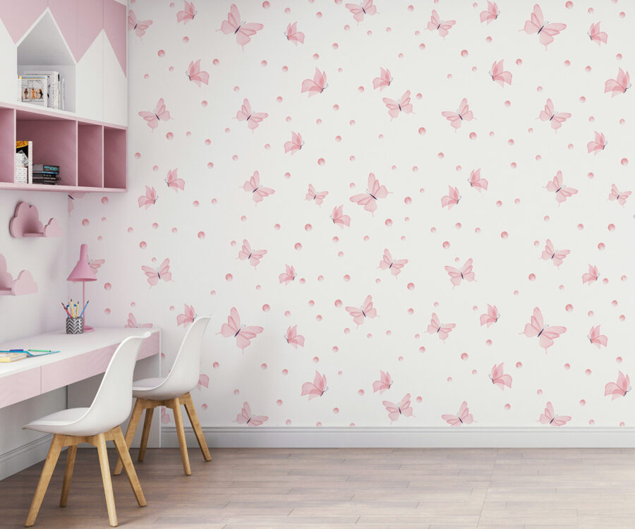 Are acel echilibru minunat – elegant, dar distractiv. Culoarea roz pastel este liniștitoare, știi? În plus, accentele negre adaugă suficient contrast pentru a menține lucrurile interesante. Este preferatul tuturor, de la nou-născuți până la adolescenți, și chiar al adulților care au o slăbiciune pentru decorurile de vis. Așadar, dacă pereții tăi se simt un pic plictisitori, hai să le dăm niște aripi! 🦋