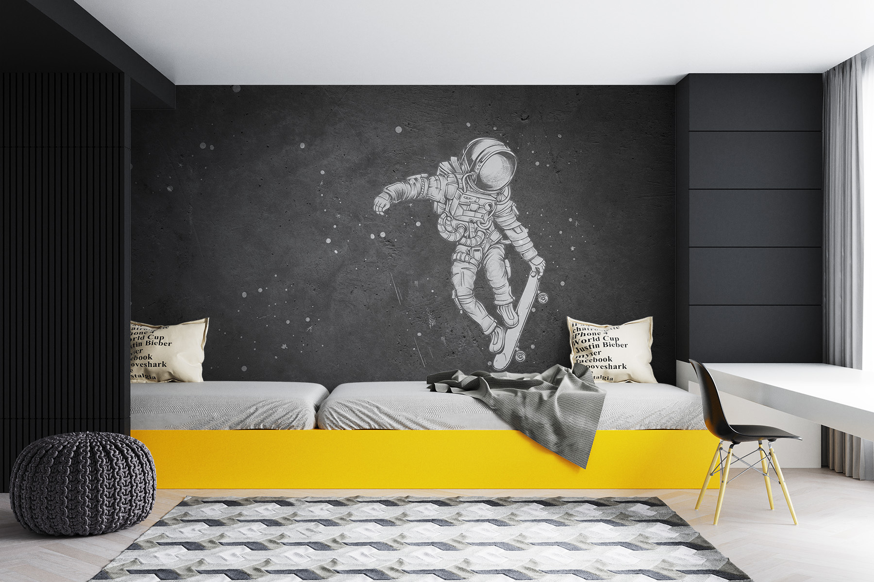 Transformă-ți spațiul cu această pictură murală excentrică care înfățișează un astronaut străbătând fără efort cosmosul pe un skateboard. Este o întorsătură jucăușă care va gâdila imaginația oricui, amintindu-ne că viața ar trebui să fie la fel de aventuroasă ca o călătorie în spațiu. Imaginați-vă că primiți prieteni, iar ochii lor se măresc când văd această piesă unică – cu siguranță vor stârni conversații! Pictura murală combină senzația de adrenalină a skateboarding-ului cu minunea spațiului cosmic, aducând un vibe distractiv care este deopotrivă chill și cosmic. Perfectă pentru camera unui copil sau pentru orice spațiu care tânjește după un strop de cool!