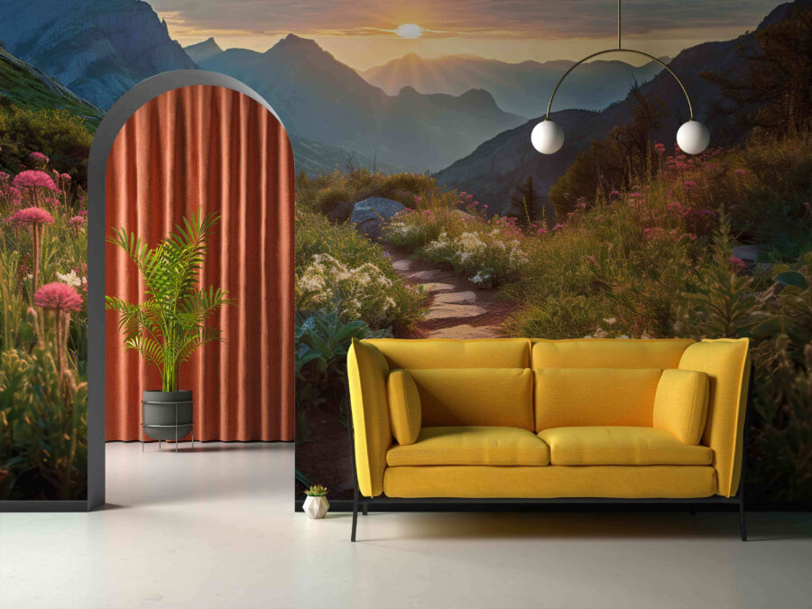 Descoperiți seninătatea zilnică cu pictura noastră murală de perete “Mountain Trail at Sunrise”. Captează perfect acel moment liniștit când soarele își începe ascensiunea, aruncând raze calde peste o cărare montană liniștită presărată cu flori sălbatice. Aproape puteți auzi foșnetul blând al brizei de dimineață? Această pictură murală este ideală pentru iubitorii de natură care își doresc o notă de aer liber în interior – ideală pentru relaxare după o zi lungă. Imaginați-vă cum vă savurați cafeaua de dimineață cu un astfel de fundal uimitor! Simțiți aerul proaspăt de munte și lăsați această priveliște uluitoare să transforme orice cameră într-un refugiu confortabil.