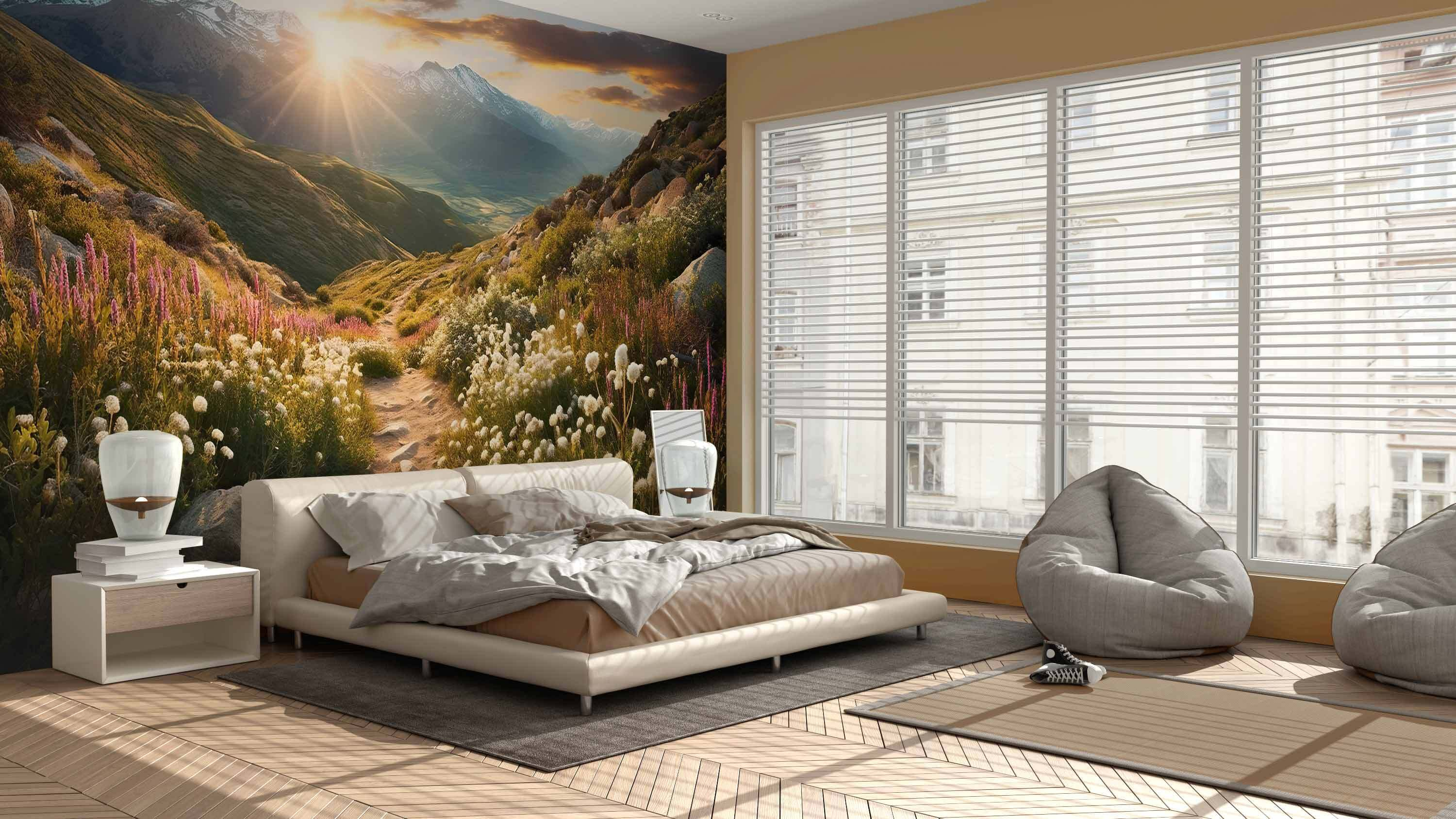 Transformați un spațiu monoton într-un refugiu de vis cu “Fototapet Sunset Over Mountain Flower Trail”. Imaginați-vă că pășiți într-o lume senină în care florile sălbatice vibrante dansează în adierea vântului și munții maiestuoși se întind la nesfârșit. Această pictură murală vă invită să respirați mai adânc, să simțiți căldura unui apus de soare și să îmbrățișați liniștea naturii chiar la dvs. acasă.