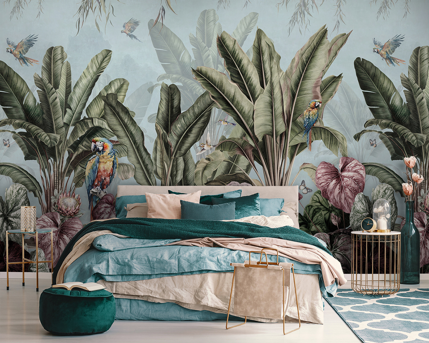 Transformați-vă spațiul într-un refugiu tropical plin de viață cu acest fototapet uimitor, cu plante luxuriante și păsări colorate. Imaginați-vă că vă treziți în fiecare zi într-o cameră care pare o junglă însorită – ce mod minunat de a vă îmbunătăți starea de spirit! Verdele intens și petele de culoare jucăușe invită la calm și creativitate, fiind perfecte pentru un colț de lectură sau un living plin de viață. Și să nu uităm de adorabilele fluturi care zboară în jur, adăugând un strop de magie. Este ca și cum ai fi în vacanță fără să pleci de acasă. Cine nu și-ar dori să savureze o cafea înconjurat de atâta frumusețe? Acest fototapet este alegerea perfectă pentru oricine dorește să aducă natura în interior.