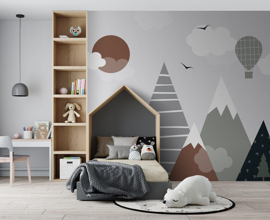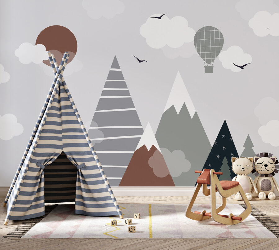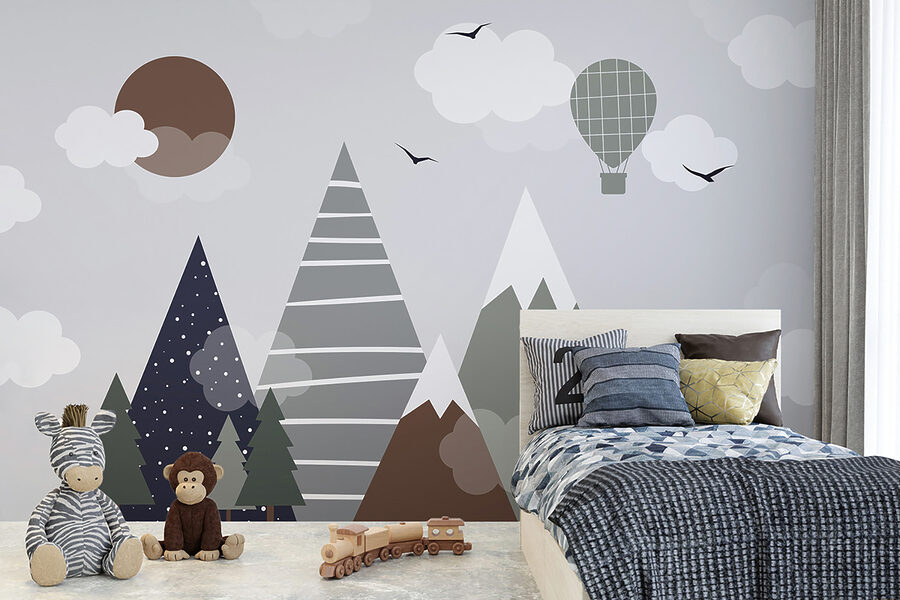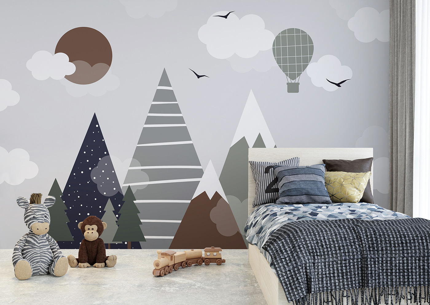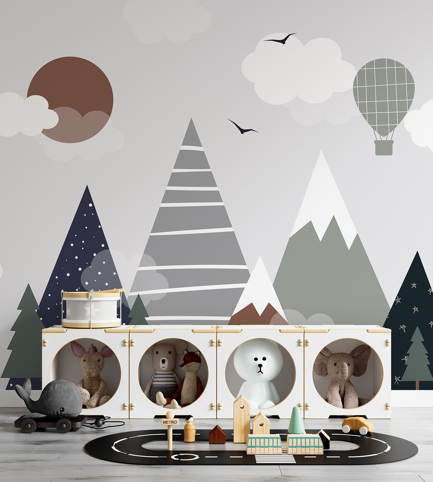 Fie că este vorba de ora poveștilor sau de ora de joacă, copiii se vor simți ca și cum ar păși într-o pădure de vis. Amestecul artistic de vârfuri, pini și bufnituri de nori le va stimula creativitatea și îi va transporta pe tărâmuri îndepărtate. Ideală pentru bebeluși, copii mici și nu numai. În plus, cui nu i-ar plăcea să aibă un balon cu aer cald plutind pe perete? Ideal pentru grădinițe sau pentru orice spațiu care are nevoie de o notă suplimentară de uimire.