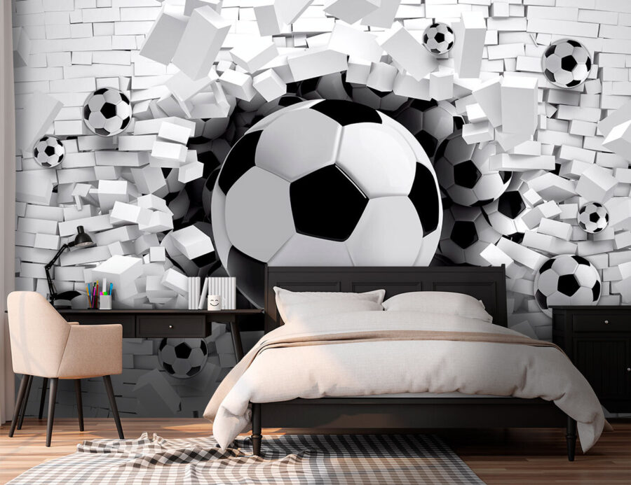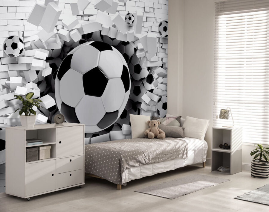 Transformați orice cameră într-un refugiu sportiv cu această pictură murală atrăgătoare, cu o minge de fotbal alb-negru care străbate un perete. Este ca și cum spiritul jocului tocmai a dărâmat ușa și s-a invitat înăuntru! Perfect pentru copiii care visează să înscrie golul victoriei sau pentru oricine iubește emoția jocului. Imaginați-vă zâmbetele și entuziasmul pe care le va aduce – fiecare privire se simte ca și cum ați fi pe teren, vă feriți de apărători și sărbătoriți acele goluri epice. Designul simplu, dar izbitor, îl face ușor de integrat în orice spațiu, astfel încât, indiferent dacă este o cameră de joacă sau un dormitor, acest mural aduce energie și distracție. În plus, este fundalul perfect pentru serile de jocuri în familie. Pregătiți-vă să vă ridicați decorul la un nivel superior!