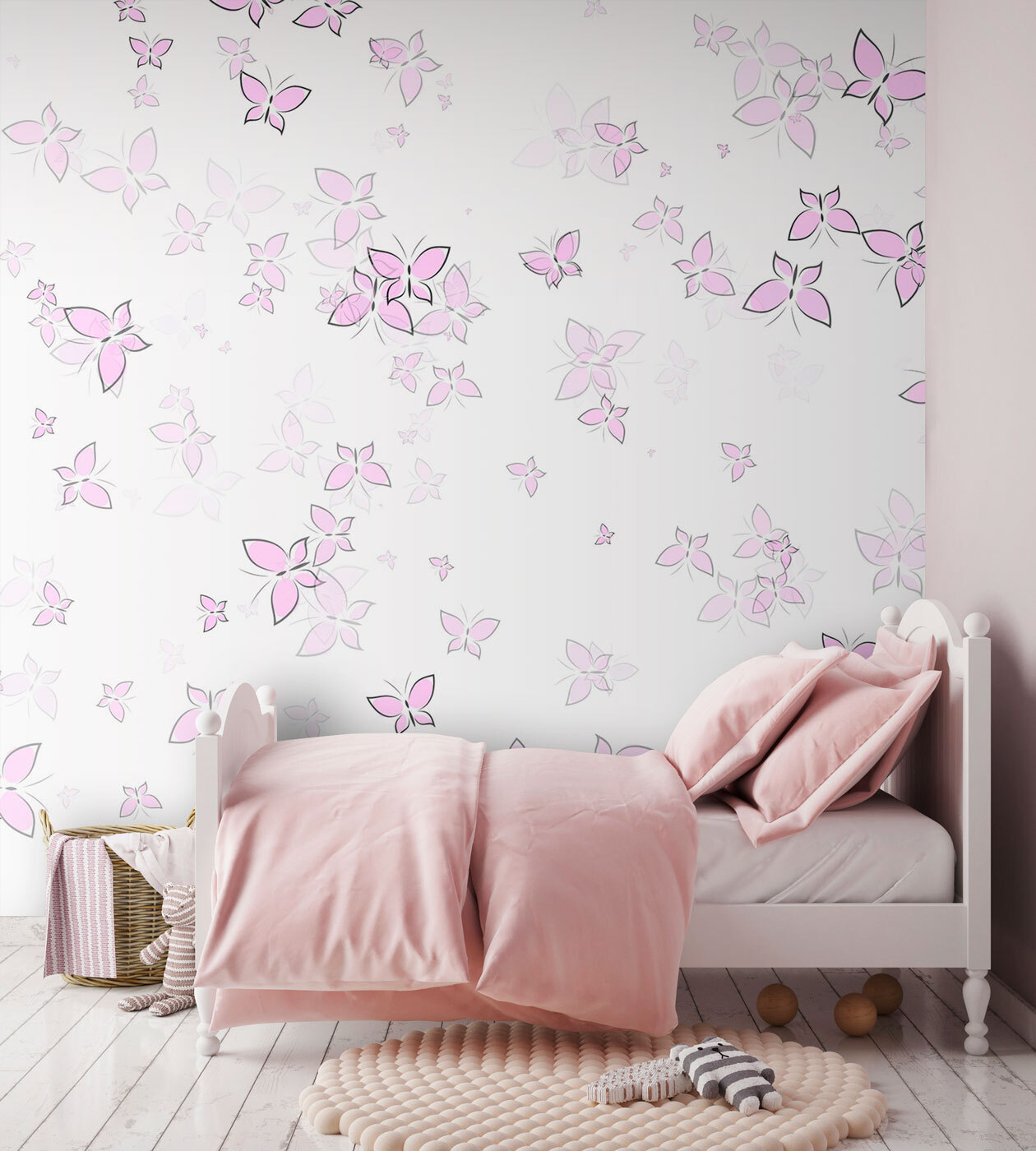 Transform your space into a butterfly garden with this delightful mural! Imagine walking into a room where soft pink butterflies gently flutter across a pristine white background—seriously, it’s a daydream come to life. This mural’s light and airy vibe makes it perfect for brightening up any corner, whether it’s a cozy reading nook or a lively playroom. Picture sipping your morning coffee surrounded by these pretty little creatures, feeling instantly uplifted. It’s like having a piece of nature indoors, minus the bugs! Ideal for those who adore unique decor, this mural’s whimsical charm adds just the right touch of magic—because who wouldn’t want their walls to inspire a little wonder?