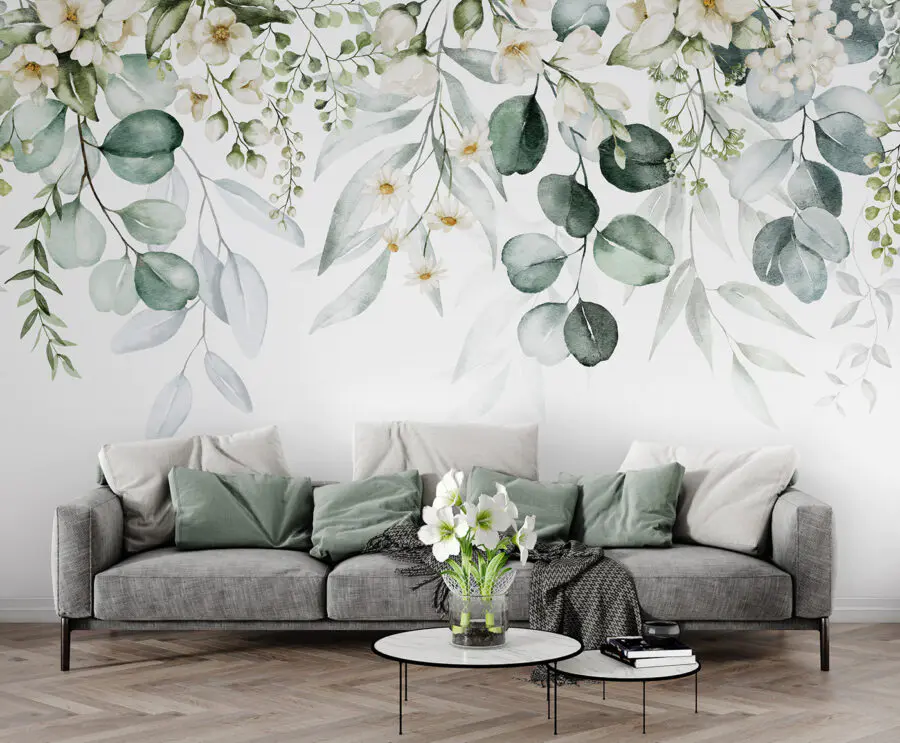 Transformați orice spațiu într-o oază de seninătate cu această pictură murală uimitoare cu frunze elegante și aranjamente florale încântătoare. Imaginați-vă că pășiți într-o cameră în care verdele luxuriant și florile moi vă întâmpină ca o îmbrățișare primitoare. Este ca și cum ai aduce natura în casă, fără insecte – și cui nu-i place asta? Această pictură murală emană farmec, fiind perfectă pentru un colț de lectură confortabil sau o cameră de zi elegantă. Efectul de acuarelă adaugă o calitate de vis, făcând ușor să pierdeți noțiunea timpului în timp ce sorbiți o ceașcă de ceai. Oaspeții se vor simți atrași, luând probabil un moment pentru a aprecia arta. Fie că este vorba de o actualizare proaspătă sau de o transformare completă, această pictură murală promite să infuzeze orice zonă cu căldură și vibrație. Lăsați frumusețea naturii să vă inspire viața de zi cu zi!