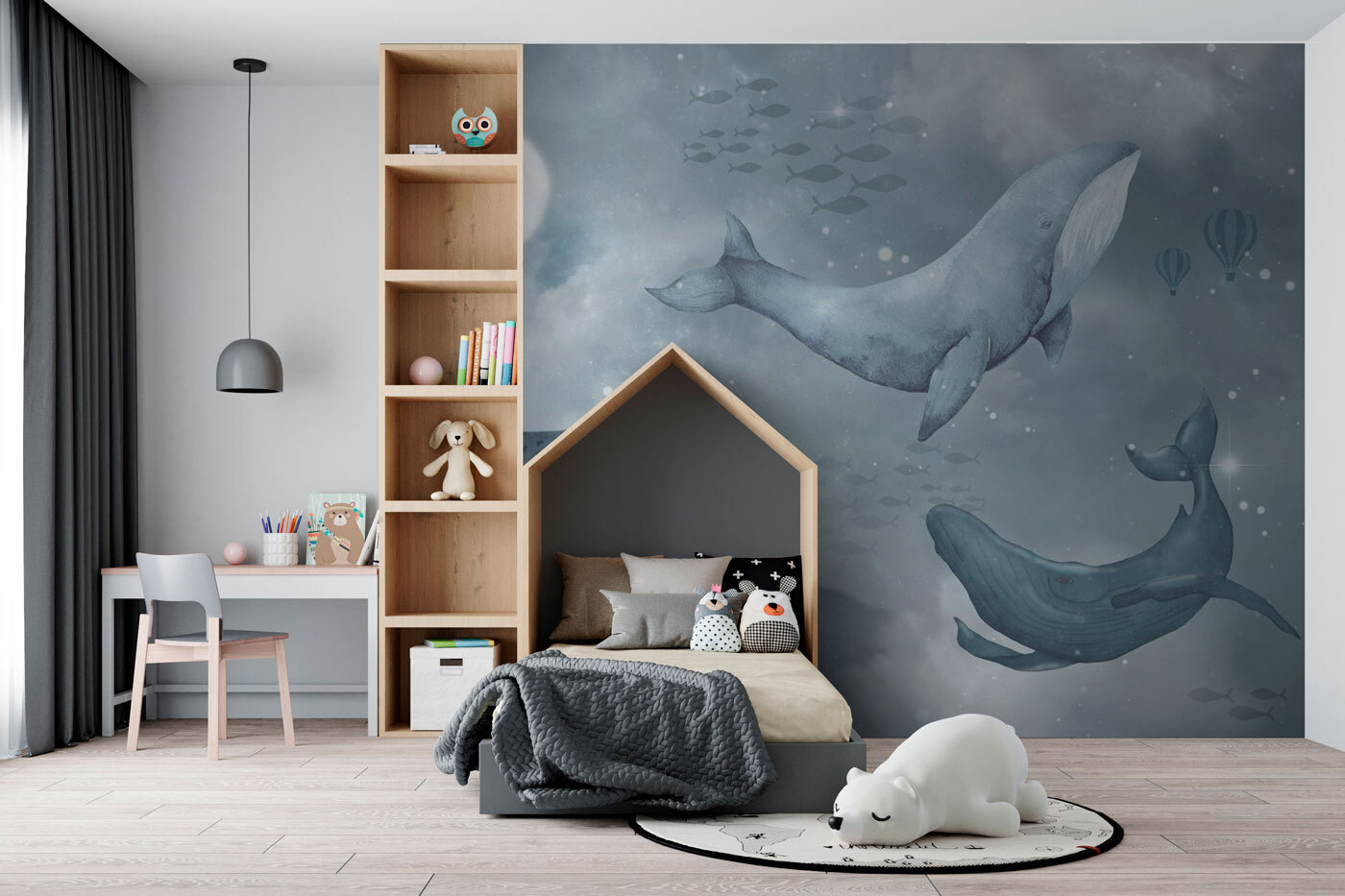 Imaginați-vă că transformați camera copilului dvs. într-un tărâm al minunilor subacvatice – acest mural “Balena înoată în apă” poate face exact asta! Cu albastrul său visător și blând și balenele jucăușe care dansează în jur, nu este doar o pictură murală; este ca o scufundare într-o aventură de poveste. Perfectă pentru camerele bebelușilor și ale băieților, aceasta aduce un vibe liniștit și un sentiment de magie. Este una dintre acele piese care vă va face să zâmbiți de fiecare dată când intrați și, cine știe, ar putea chiar să inspire un viitor biolog marin sau doi. Ușoară, elegantă și total fermecătoare – în plus, nu-i așa că toți copiii iubesc balenele?