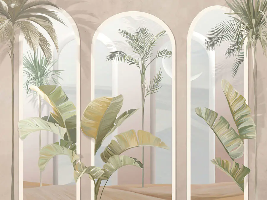 1 recenzie pentru Fototapet Ferestre arcuite cu plante tropicale