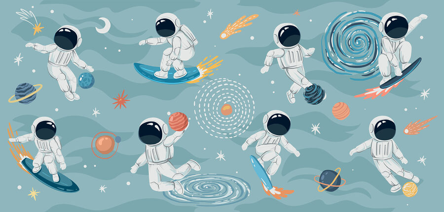 Imaginează-ți că transformi camera copilului tău într-un loc de joacă cosmic cu acest mural minunat. “Desenul animat al unui astronaut pe o placă de surf” vă poartă într-o călătorie nebună prin spațiu – este ca și cum ați lovi valurile galaxiei direct de pe peretele dvs. Perfect pentru a stârni imaginația unui copil sau pentru a adăuga o notă excentrică unei camere de joacă. Are toate elementele – planete, stele, chiar și un pic de acțiune cometă. Îți poți imagina poveștile de culcare? Visând la aventuri pe Calea Lactee, călărind stele căzătoare. Este plin de viață, distractiv și un pic ciudat – exact așa cum ar trebui să fie copilăria. Face ca orice spațiu să pară cosmic!